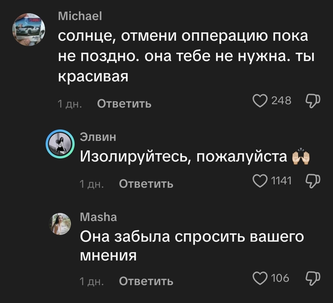 Не понимаю, почему она и Синус не обкололись оземпиками... Синус особенно, рассказала бы, как ей крутой доктор в дорогой клинике бережно назначил лечение.