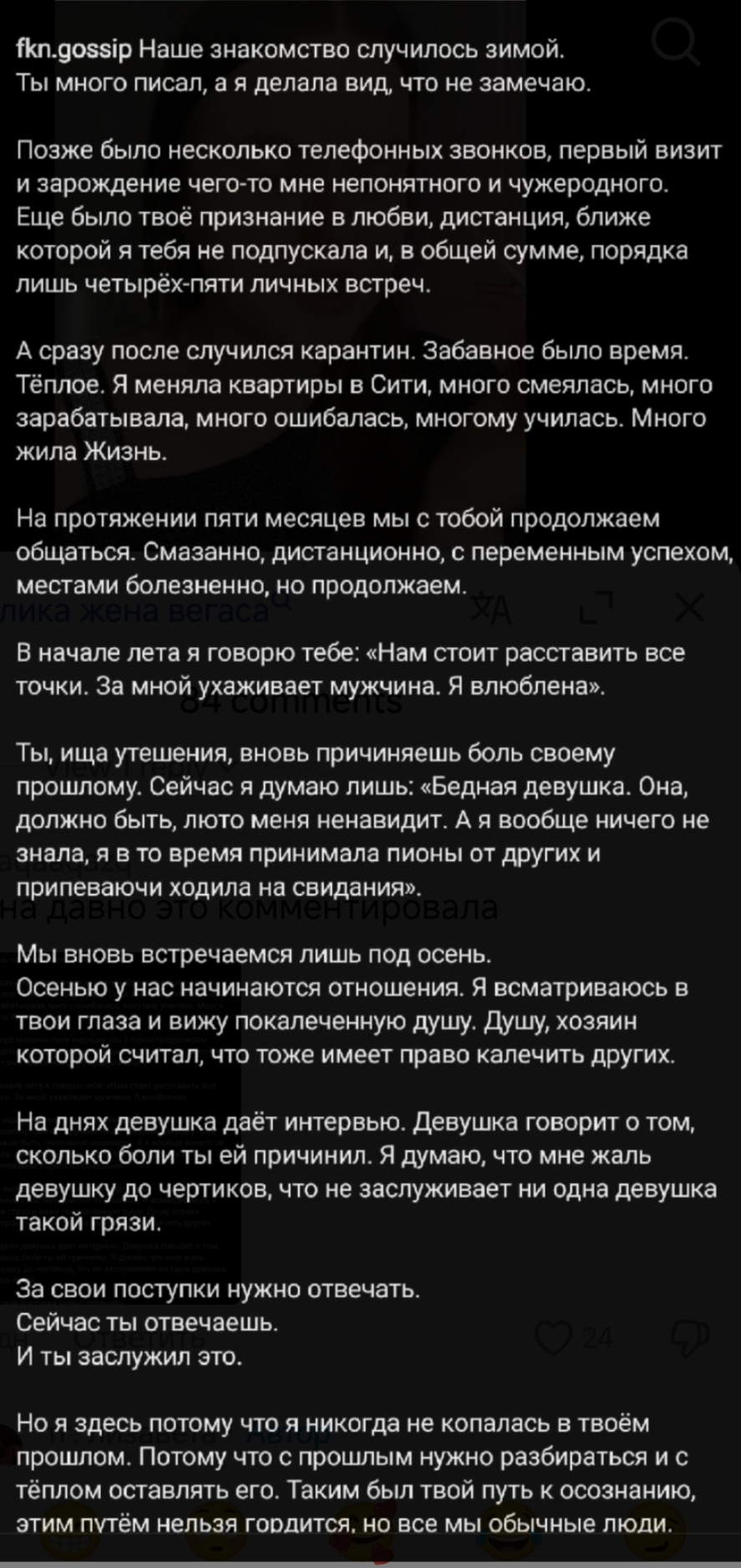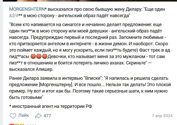 >>6482582 блядь я только сейчас поняла, что это та самая Лиза, которая встречалась с Дэниелем Вегасом! (чедикс из фильма "Твое сердце будет разбито") когда с ней жил она за все платила, он хотел ебаться каждый день,они то сходились то расходились, изменял с ее подругой и др бабами и кинул,когда нашел вариант получше в Москве а по Моргенштерну вот че пишут: По словам Василенко, начало романа было прекрасным: пара много путешествовала, получала дорогие подарки и встречалась со знаменитостями. Однако к середине лета поведение Моргенштерна изменилось: он стал агрессивным, холодным и злым. Рэпер начал подавлять возлюбленную: запрещал ей работать и учиться, называл лишь своим «дополнением». Из-за постоянных унижений у Василенко начались серьёзные проблемы со здоровьем: врачи диагностировали у неё сахарный диабет. В это же время у самого артиста выявили шизотипическое и биполярное расстройство. Василенко призналась, что три раза пыталась уйти от Моргенштерна, но всегда возвращалась. После одной из ссор, когда рэпер выгнал её из дома, Василенко улетела в Лондон, где из-за падения уровня глюкозы в крови чуть не потеряла сознание. После этого Василенко решила порвать отношения с Моргенштерном и забыть про него.