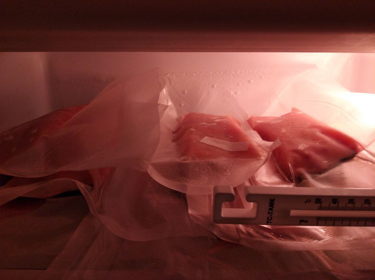p.s. Хочу сказать спасибо анону из огуречного треда, который посоветовал нитриловые перчатки - действительно очень удобно. p.p.s Толстая, тяжелая полипропиленовая доска 50*35 оказалась идеального размера - то, что нужно. p.p.p.s Боялся, что кристаллы соли проткнут вакуумные пакеты изнутри, но этого, к счастью, не случилось, соль при вакуумации вдавливалась в плоть.