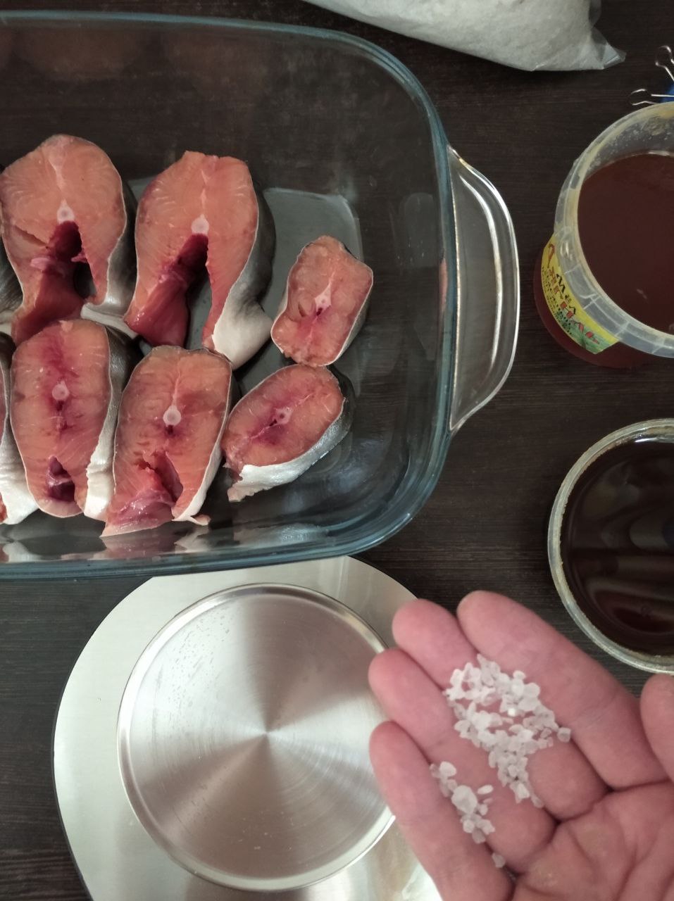 >по килограмму скумбрии селедки гарбуши леща минтая мойвы камбалы путасу трески А куда столько? Или ты потом замораживать уже посоленную хочешь?