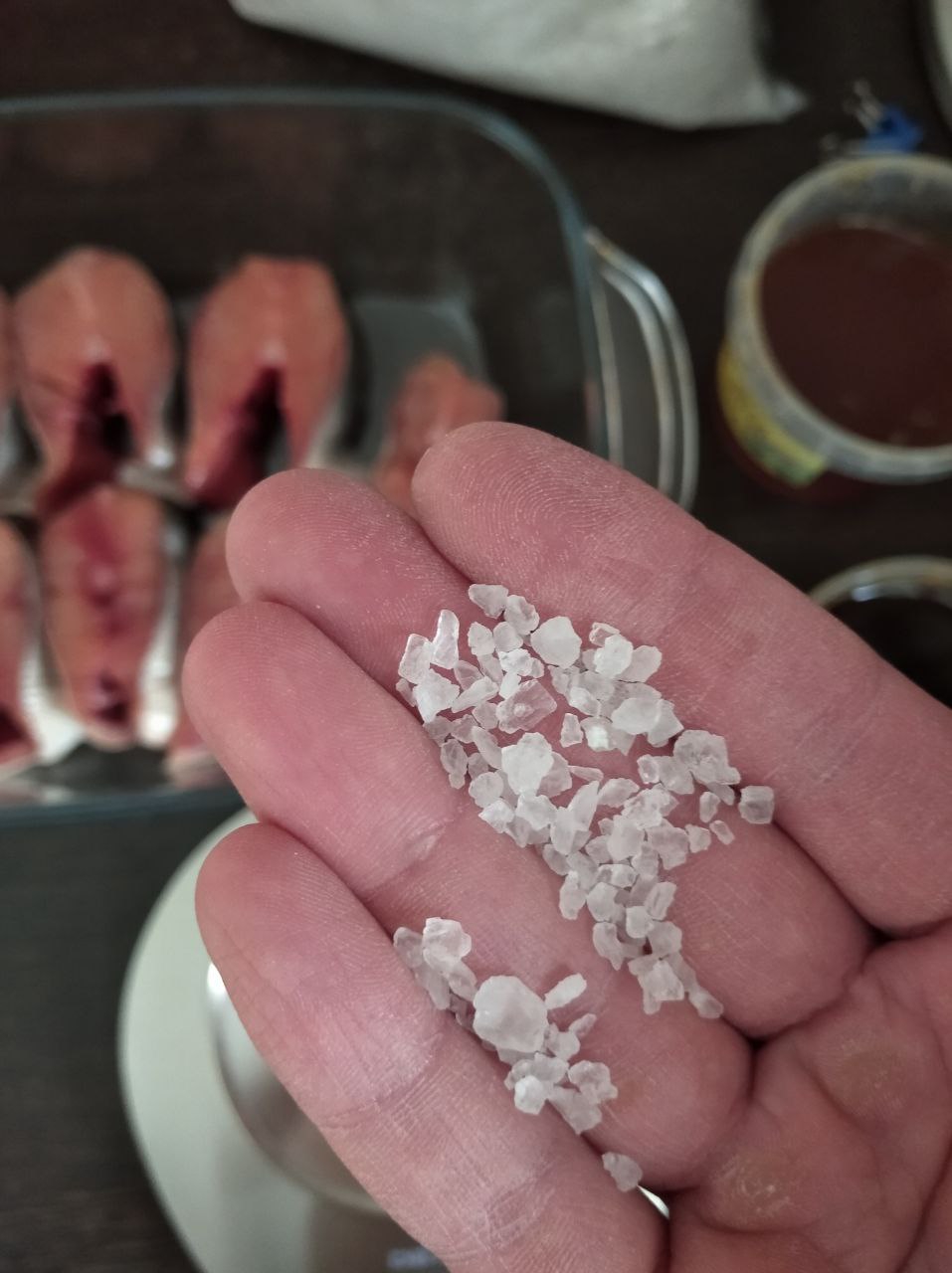 Забыл добавить, что собственно плюс крупного помола в том, что большие кристаллы тают очень медленно, равномерно просаливая филе на всю глубину, не обжигая наружные слои.