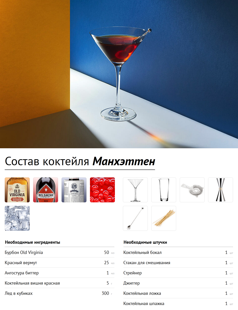 Годные ресурсы: http://www.inshaker.ru/ — максимальное количество коктейльных прописей, от классики до современных экспериментов. Стоит обратить внимание, что многие рецепты отличаются от рецептов IBA и других источников; https://www.diffordsguide.com/ — иншейкер здорового человека, несравнимо больше коктейлей и различных интересностей, но на английском языке; https://iba-world.com/ — Международная Ассоциация Барменов. Все классические и самые важные коктейли здесь.
