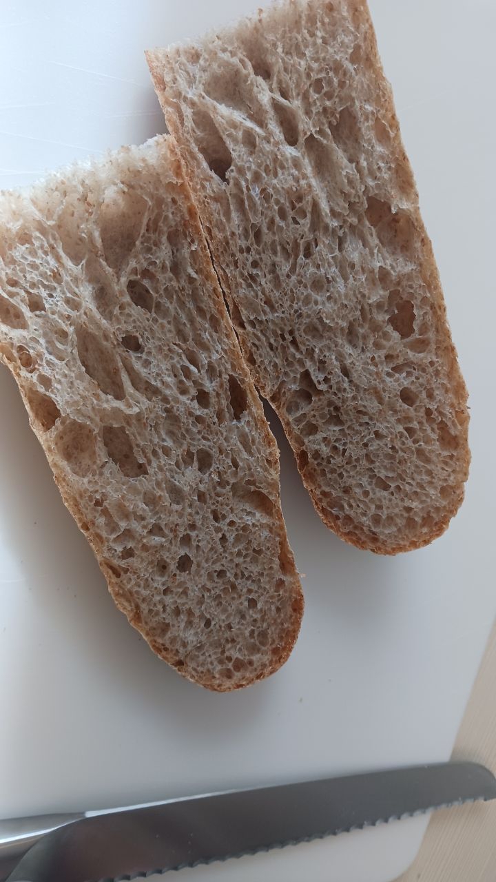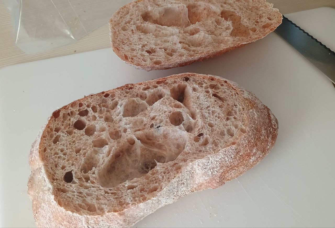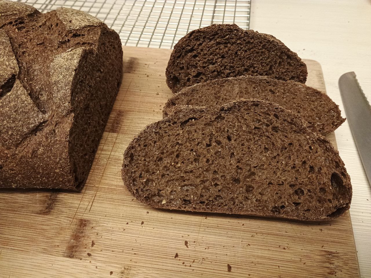 >>750122 На четвёртый день хлеб стал просто бомбический, корка смягчилась после после моего проёба "вспышки" с передержкой в духовке, мягкий, плотный, кислинка улётная и соль в норме. Я доволен.