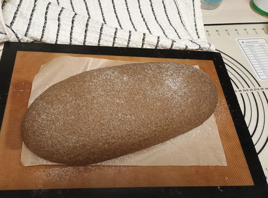 Пик 2 как итог: Печешь @ Ешь @ Хорошо. Бамп Формула: Мука (ржаная и пшеничнная, 80% и 20%) 520г 100% Закваска 100% влажности: 90г 17% Вода 360г 69% Соль 10г
