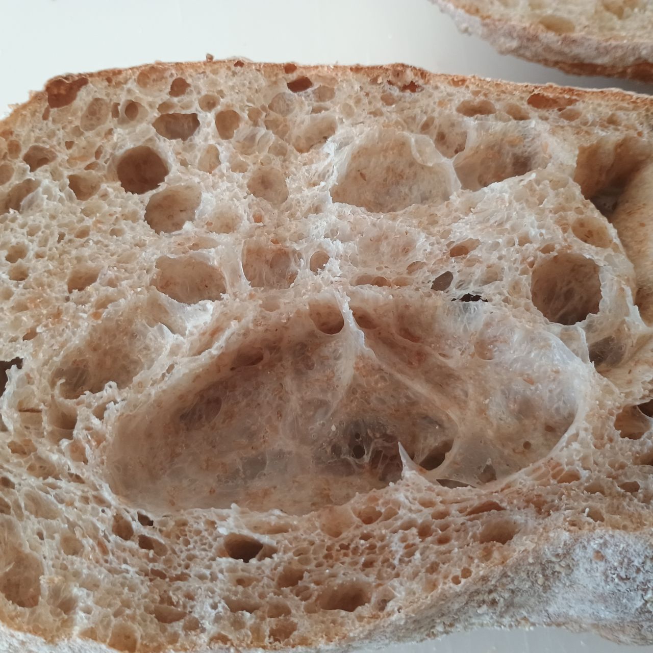 И ещё после того как вымесил его в самом начале и оставил ферментироваться, снова его харрдово вымешиваешь нельзя. Этим ты только все испортишь. Нужно просто сложить с каждой стороны по разу и оставить на пол часа. Повторить раза 2 и в форму положить. Суть в том чтобы укрепить и разнообразить структуру, но не проебать объем и газы.