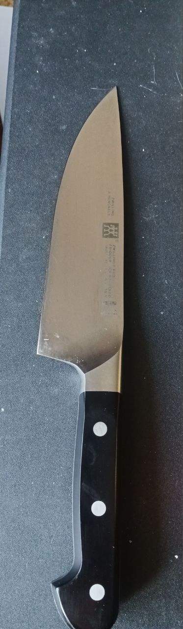 У меня пикрелейтед, и мне его хватает для любых операций, такие как разделка рыбы, порционирование и зачистка мяса, птицы, нарезка магазинного хлеба, шинкования лука, капусты, для чистки лука, и т.д. В общем отличный сбалансированный шеф-нож с острой пяткой, не толстым клинком и достаточно пластичный для комфортной разделки судака, окуня, сибаса и другой рыбы не превышающей габариты среднего лосося, с которого снимать кожу этим ножом реальный кайф, только вот снять кожу с рыб покрупнее за один прием будет уже сложнее из-за длинны клинка 20 см, но я не пробывал. Клинок выполнен из стали AUS-8. Покупал я его за 4200 рублей год назад, и за год активного использования я его затачивал -+ 3 раза, а раз-два в день правлю его мусатом, режет по сей день очень нехило, не только изза того что я его правлю но еще ширина клинка маленькая, за счет чего сопротивление тоже маленькое. С завода у такого ножа угол сведения 16 градусов, но своими, пока что не до конца прямыми руками мог этот угол уменьшить немного. Измерительных приборов у меня нет, только камни и мусаты.