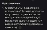 >>715972 >пик Хуйня полная этот совет... содержимое очень мягкое, примерно как печень или даже мякше, а вот кожа весьма прочная, заметно прочнее куриной кожи. Поэтому чистить яйца коровы следует так: 1. Замораживаем 2. Обливаем теплой водой чтобы кожа разморозилась, а внутрянка оставалась еще твердой 3. Надрезаем кожу вкруг одним разрезом 4. Поддеваем краешек кожи и легко сдираем её, а внутрянка остается твердкой замороженной 5. Потом содержимое яиц размораживается в кастрюле с комнатной водой и аккуратно режется на полоски/брусочки