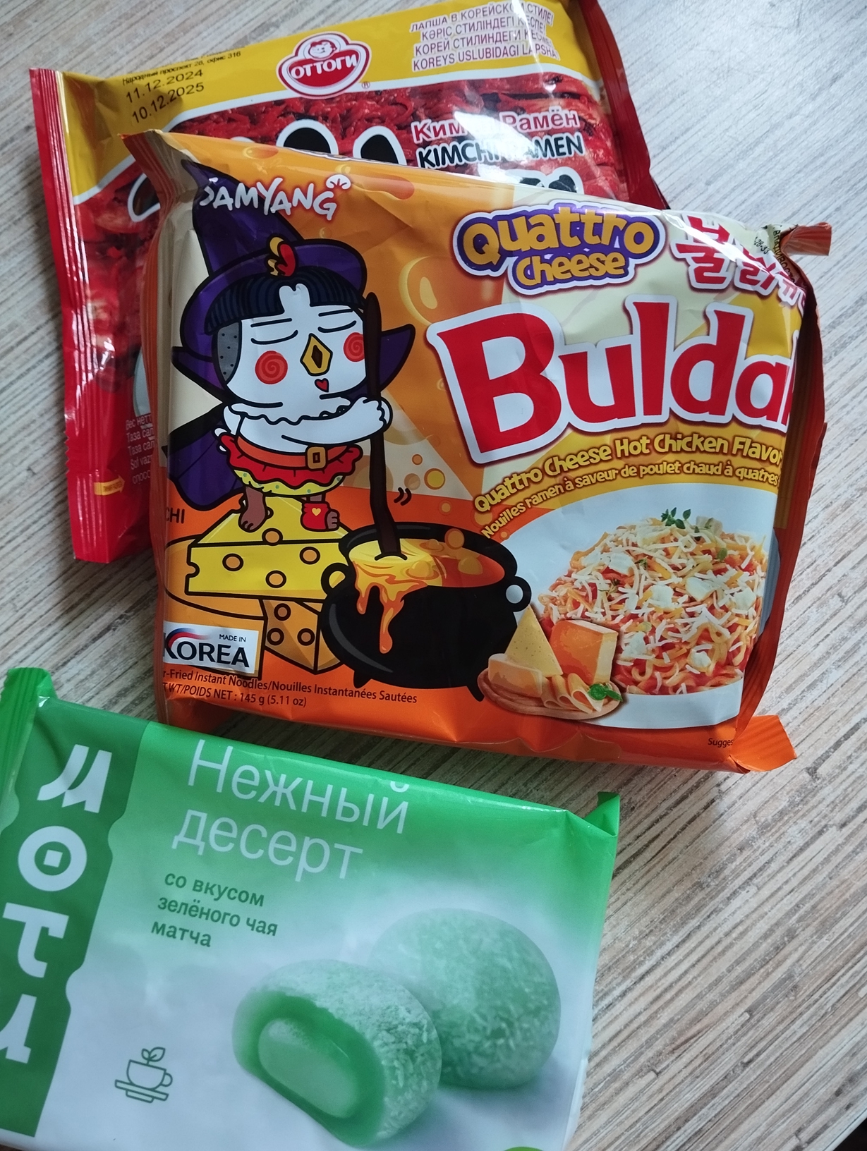 Не знаю, что сказать. «Вах, как остро» отсутствует. Сырная часть обещает многое запахом, но оказывается довольно равномерным вкусом. Кимчи вообще где-то в фоне, хотя куски плавают. Плохим не назову, есть можно, но для общего развития.