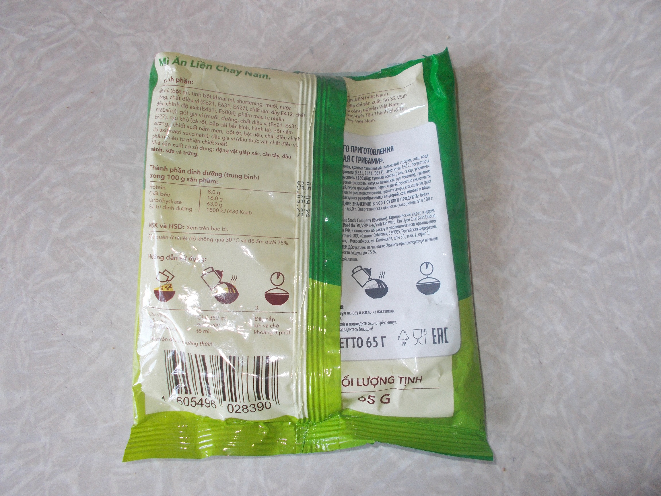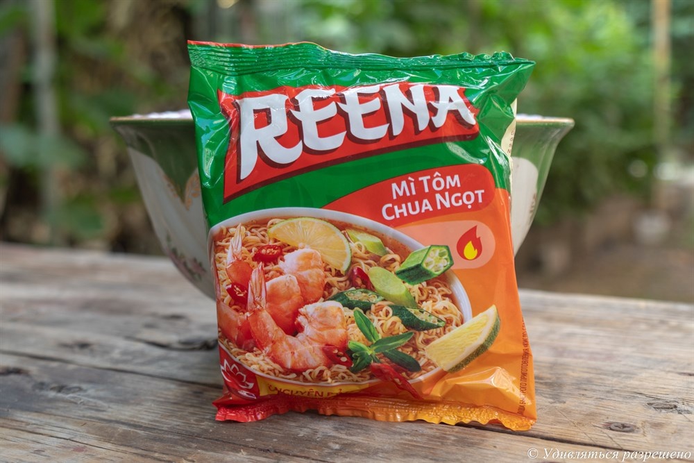 Плюс в том, что прозрачная рисовая лапша нарезана неровно, и широкие пласты во рту ощущаются необычно, не так, как у остальных. Больше плюсов нет. Бульон условно свинокопчёноговяжий, прозрачный, слабый, забит сверху какой-то петрушкой, больше ничего не чувствуется. Произведено во Вьетнаме, так что по факту тоже импорт, но даже своих сорока рублей не стоит. Экономия на всём произвела трэшачок.