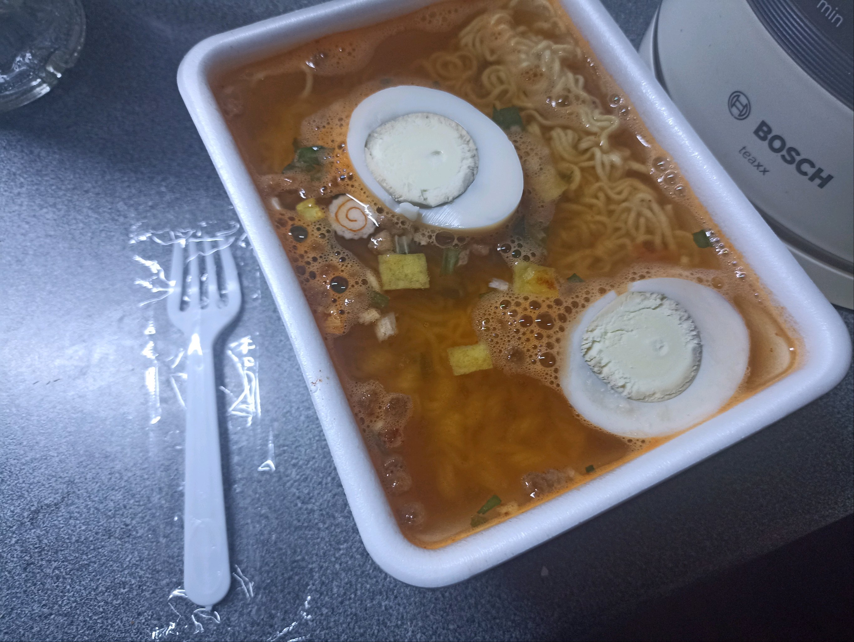 >>722791 Чего 150 грамм то? Это полноценная лапша с соусами и тд, в нее дополнительно докинуты ингредиенты уже мои собственные. Я тестирую разные сочетания с разными видами лапши, в этот раз просто яиц не было в холодосе, обычно есть и я стабильно их кладу вместе с другими добавками. И вроде такой подход это стандарт в раменах.