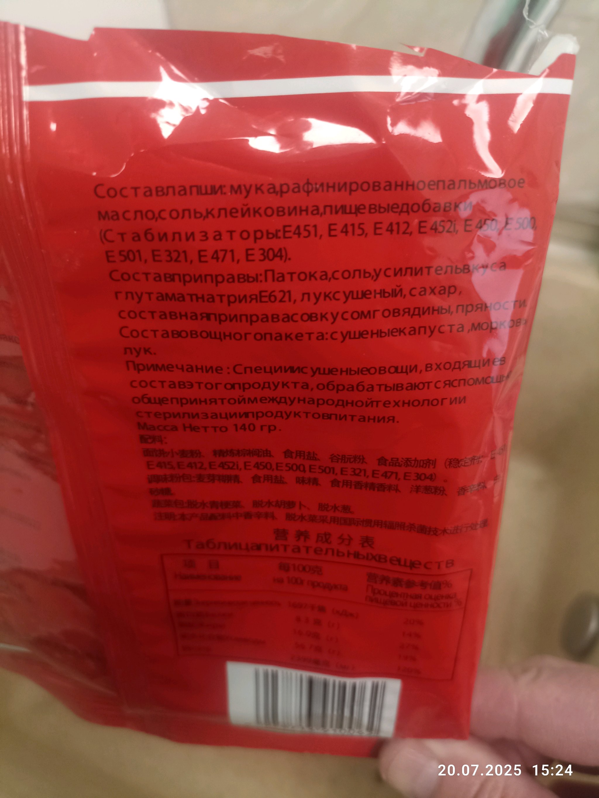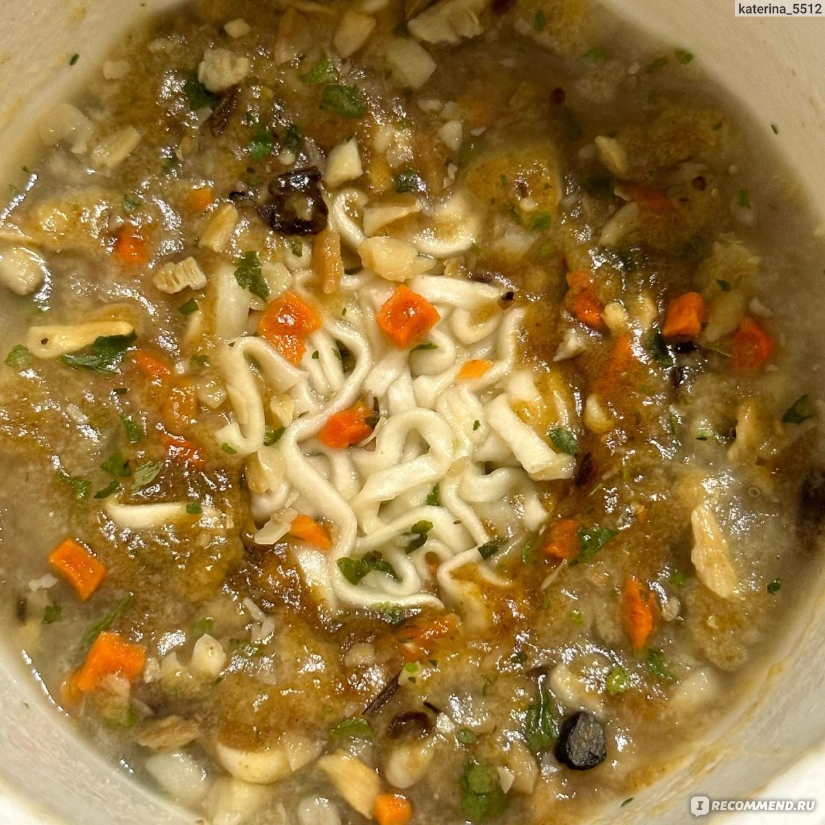 Дивитесь что я только что употребил, и не повторяйте мою ошибку. Куплено за 49р в магните. Открываю, а выглядит уже мерзотно, аромат сразу после заливки потрясающий. Доел лапшу но бульон допить не смог, начало подташнивать. Будто залили бомжпакет несладким энергетиком.