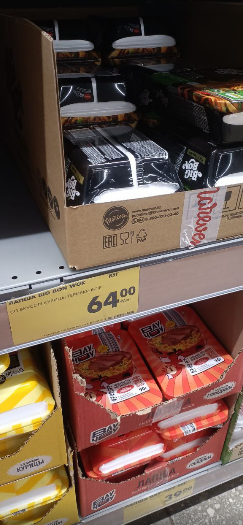 Не могу назвать «Доширак» нормальной фирмой. Смены рецептур, вкусы, которых не найти, упор на какую-то выдуманную «премиальность» при очень скромном составе. И вообще, мне кажется, местные бизнесмены друг друга загнали в дурацкую патовую ситуацию. Заходим в «Пятёрочку», видим полку, сплошь заставленную мисками куриного дошика и такую же полку с мисками говяжьего. Прямо как в советские годы одни и те же консервы выставляли на всю ширину. Что мешало пару коробок других вкусов сбоку добавить? Чудится мне, что одни давили «дайте нам минимальную цену», а другие в ответ давили «дайте нам гарантированный объём закупок», и теперь сложилась такая хуйня, в которой ничего заменить нельзя, чтобы условия не нарушить.
