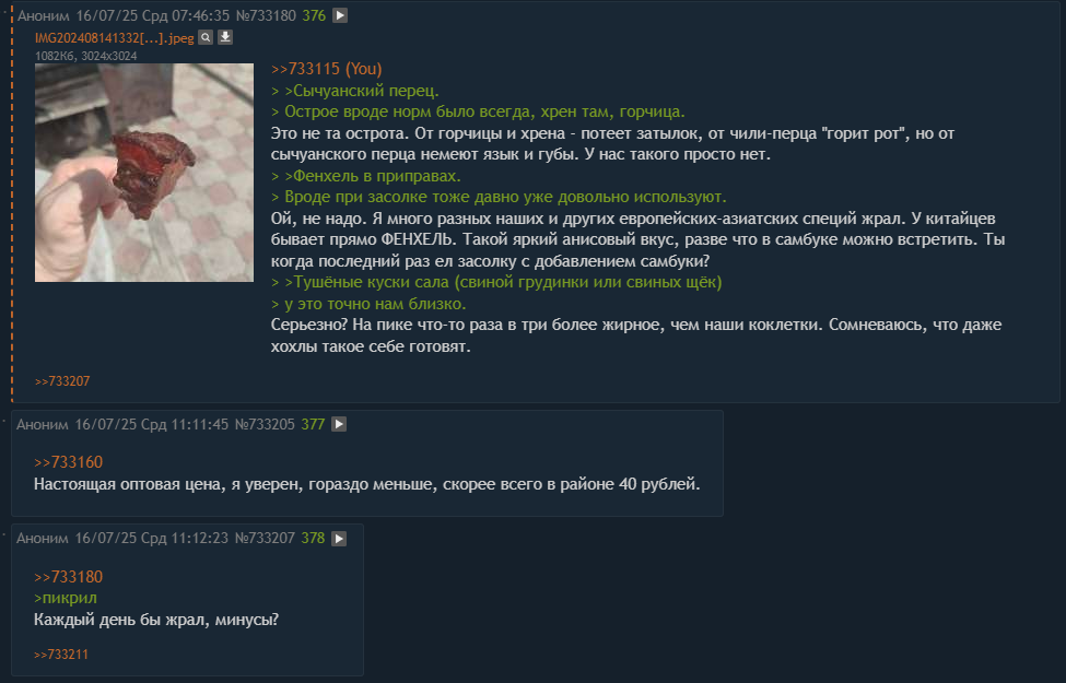 >>723280 х3 - единственный который меня пробивал на слезу и вынуждал останавливаться, приговаривая "ух бля". Стю очень люблю, наверное самый СМАЧНЫЙ из всех лично для меня. Что стю что х2 залетают почти как дефолтный супчик. Между х2 и х3 разница что-то типа 5к сковилей, если верить бульдаковской табличке - вот, видимо, где-то там и находится мой порог между просто вкусной жратвой и пищевым экстримом. При этом не могу сказать что х3 без сливок меня именно убил и разложил на атомы - он ОЧЕНЬ жгучий, но я его не запивал и не испытывал трудностей с дыханием, допустим. Другой вопрос что своего вкуса у него почти нет, он тупо жжёт и всё. Это скучно. Стю с его дивным густым запахом и таким же вкусом или вот этот сливочный вариант куда интереснее.