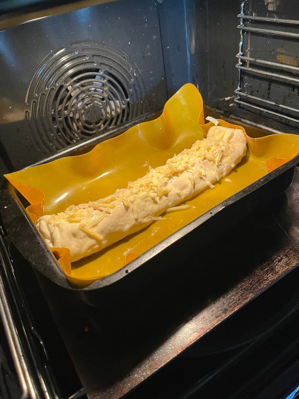 Этап4 обминка по-багетному, формирование колобка, расстойка в тепле (у меня в духовке под перевёрнутым салатником и под лампочкой) 1-1.4часа