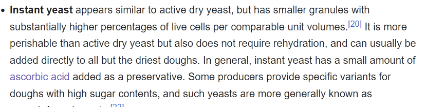 >>733618 >Сухие быстрые дрожжи должны сработать быстро Они тебе ничего не должны. Все дрожди это та же самая культура. Разница только во времени активации, которое будет медленнее не для инстантных, потому что контактаная поверхность кусочка меньше чем у инстантных, у которых каждая гранула это губка.