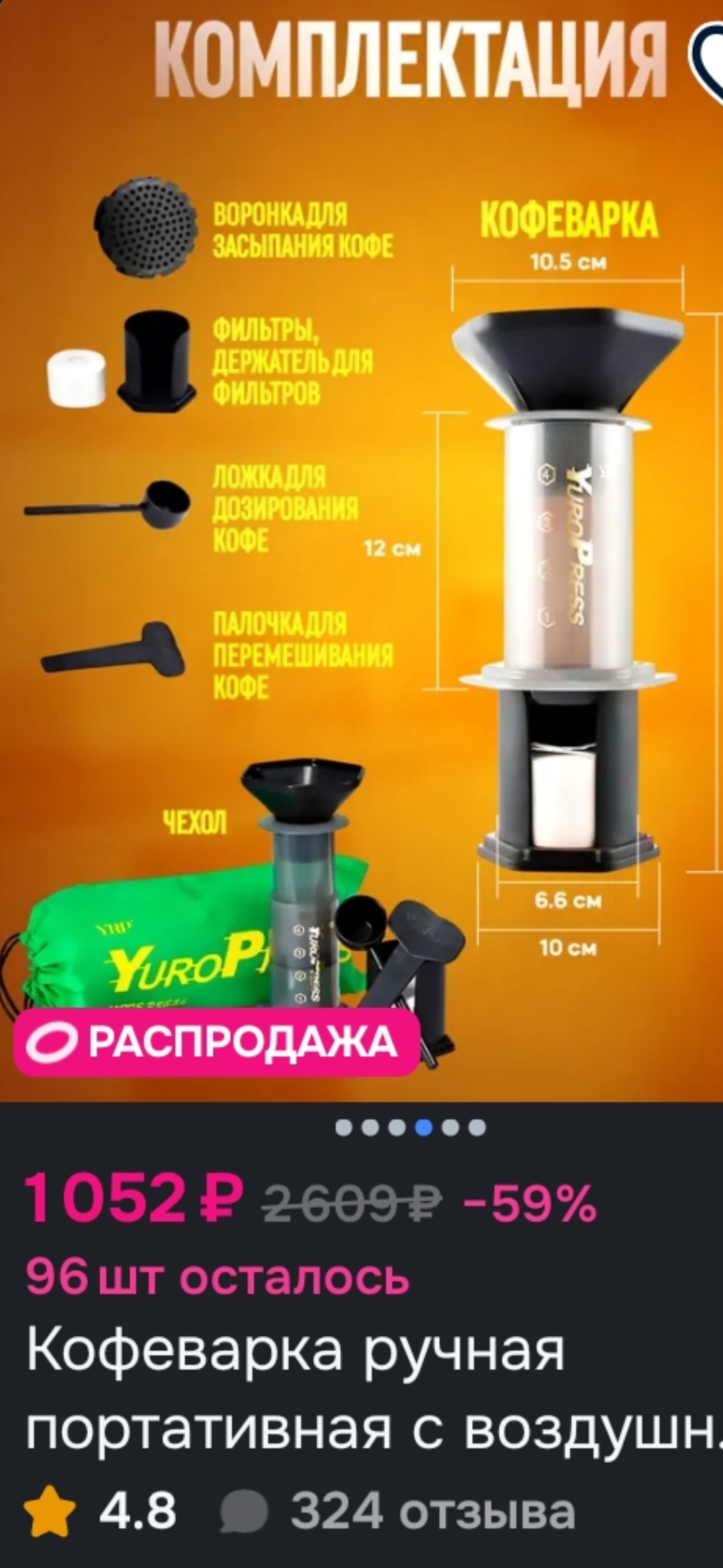 сап, что по гейзеркам взять на маркетплейсах из нищих вариантов (1-2к) у прошлой 0.6 моки помялась воронка в которой таблетка и перестала продавливать 0.1-0.2 кофе, нужно ставить больше огонь, да и сам кофе пресный-земляной из за того, что вода продавливается с трудом.