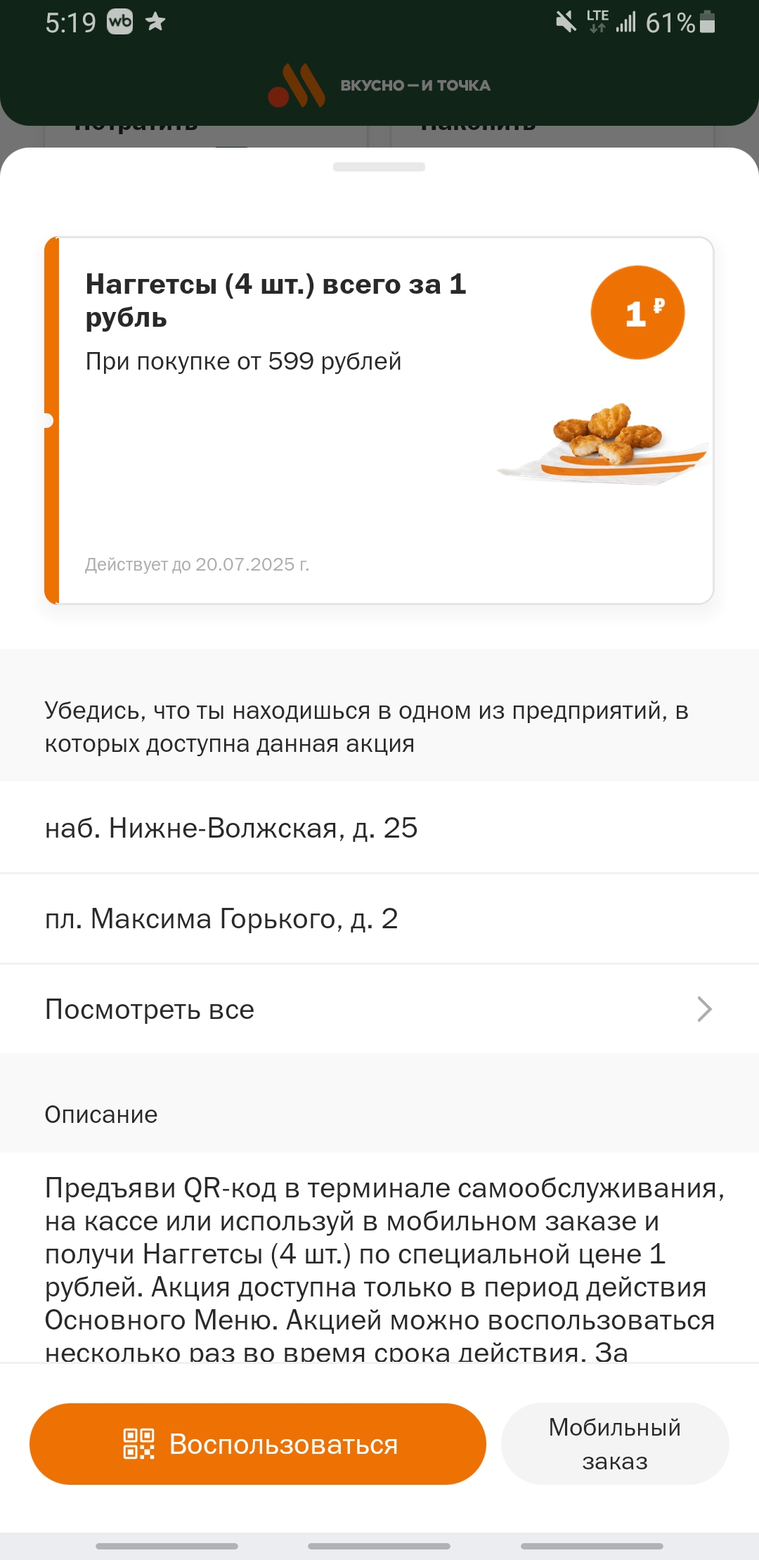 >>732473 Ну нагетсы в принципе не столько вкусные, сколько нажористые, порция довольно большая. Сегодня завтракал в бк большим капучино по купону за 95 р и брауни за короны. Брауни рекомендую, это горячий пудинг с какао, к кофе вообще отлично заходит. А в обед ел комбо за 269 но с воппер Джуниор и средней картохой вместо специй плюс гой-наггетсы. Бтв почти все старые пуконы протухли, вся надежда на калориешиза, что он новые накопает. Стараюсь брать в бк на 350 р чтобы участвовать в челлендде герой будней и трясти короны, по другим сетям не особо много знаю. В среду в ростиксе был пукон на байтсы, но они средние по вкусу, мне пока больше нравится бк