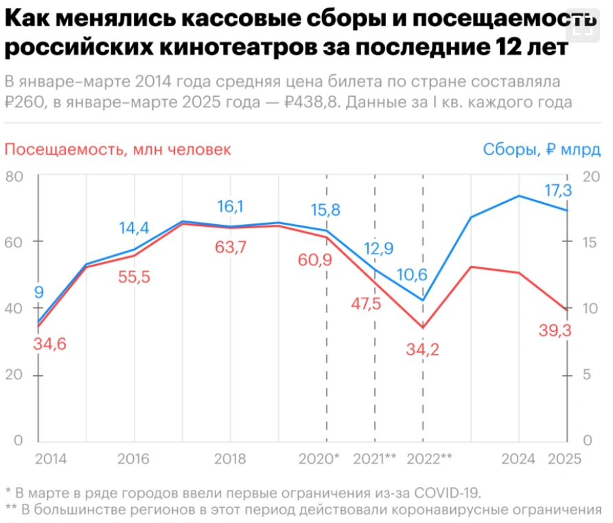 >>733433 >Вечером найду инфографику по ВиТ и как сеть разъебывает по фин показателям по сравнению в Макдонлдс. И правда, действительно, мне вот интересно посмотреть полный разбор, как это выглядит, не только по общему доходу, но и по количеству заказов и среднему чеку. Вангую, что как с кинотеатрами, когда до ковида стабильно превышали планку по 60 миллионов билетов за квартал, сейчас не добирают до 40, зато доходы вроде как и выросли так как средняя цена билета практически удвоилась.
