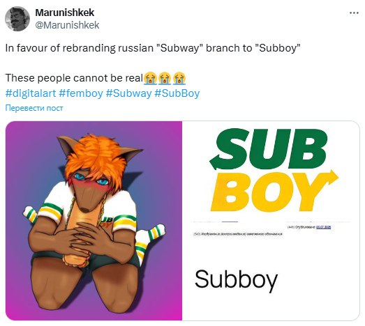 >>733496 В англоязычном Интернете дико рофлят над новым названием Subway в России — Subboy