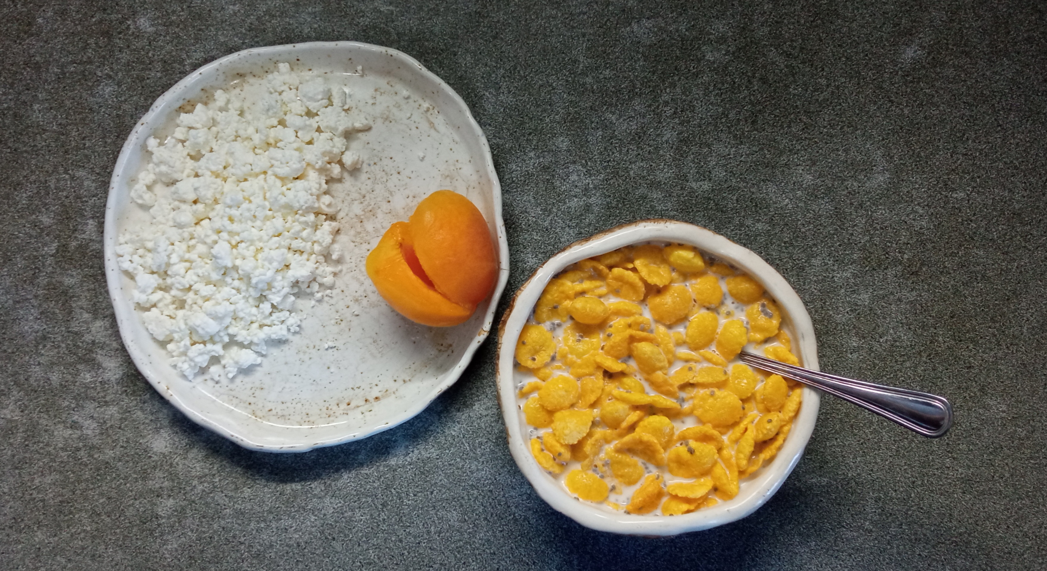 Классическая прелюдия к завтраку: кукурузные хлопья без сахара с чиа и миндальным молоком собственного производства + 2% творог. А Руперту: вареная шея индейки с овсяными хлопьями и перемолотой яичной скорлупой + 5 капель лососевого масла 🤗
