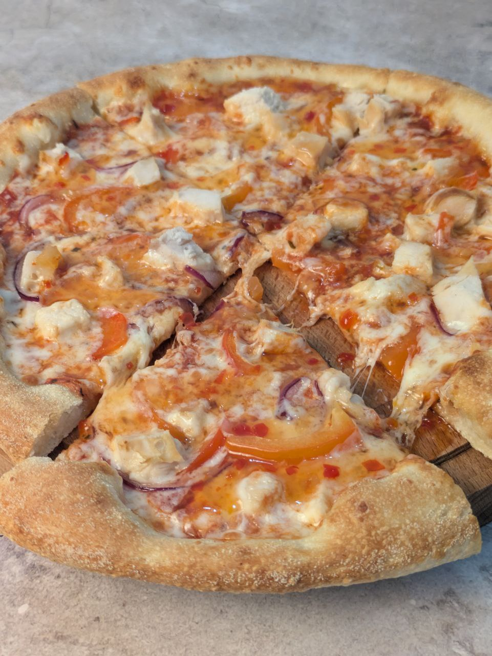 Единственное что второй этап с заморозкой и допеканием я проебался и допекал на 220 градусах. Это было ошибкой, за 10 минут сыр не поплавился толком, ну и основу подсушил. Но опять же, будь это тонкая основа, то был бы пиздец, а с толстой основой не так критично.