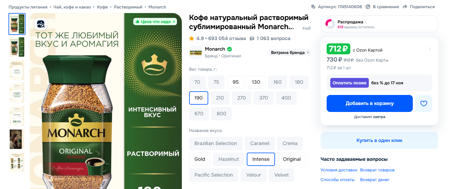 >>742170 Если ты из ДС-2, то они присылают на следующий день, я поэтому я беру у них часто вместо тейсти. Пару раз попадалась месячная обжарка (по вкусу все равно норм было). Присылают без упаковки. Конкретно этот кофе на пике, я пробовал. За 500 рублей он хороший, но конечно не такой как кофе за 1к и больше, хотя иногда и за такую цену бывает хуита даже от сварщицы.