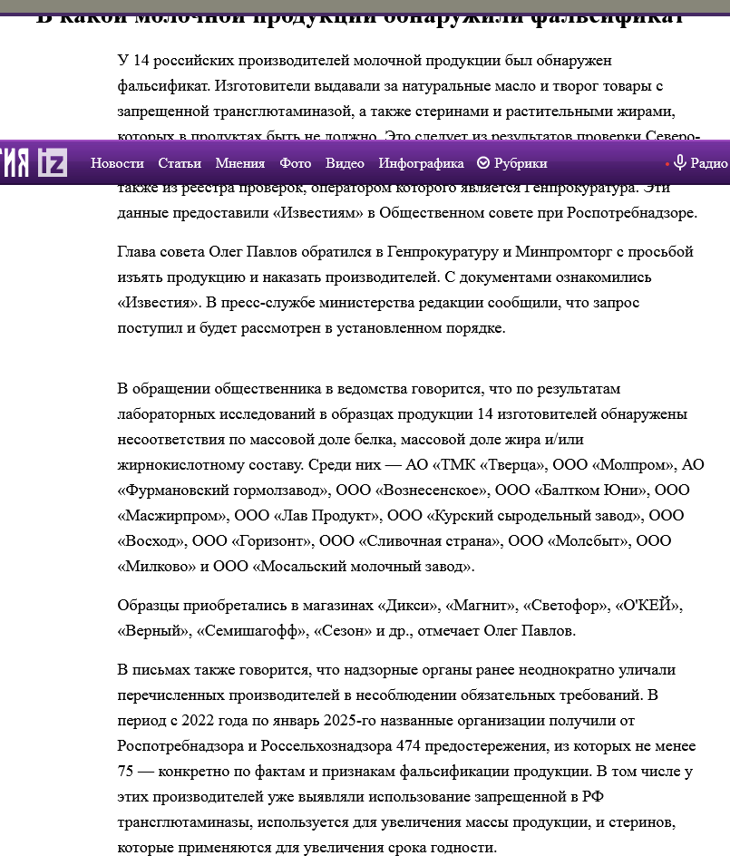 >>745168 >Не кислый Тогда это был не творог, т.к.мне кисломолочный, или из пальмы контрафакт. >кто-то написал Надзор потреб со своими лабами. Мало? >зависимости от места покупки А ещё у производителей отменяли проверки несколько годков. Я тебе про среднее по материку, вне зависимости от партии, хранения и всякого. Не нужна тебе личная лаба для пары минут поиска в тырнете, если опять не понял.
