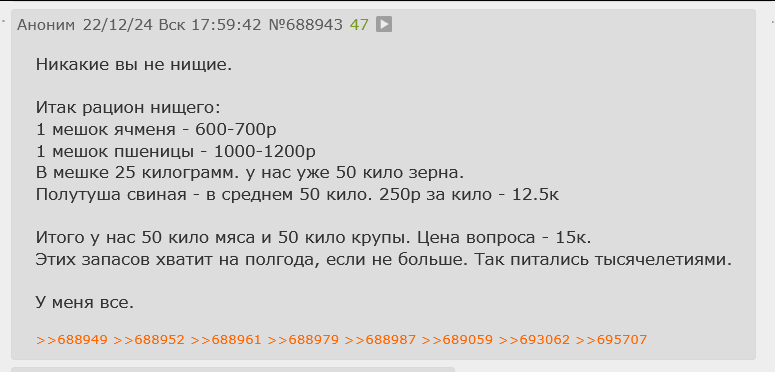 Вообще лучше в следующем перекате какой то список мастхев-дешевых продуктов написать, чем писать очевидную хуйню типа "не ешьте дошики"