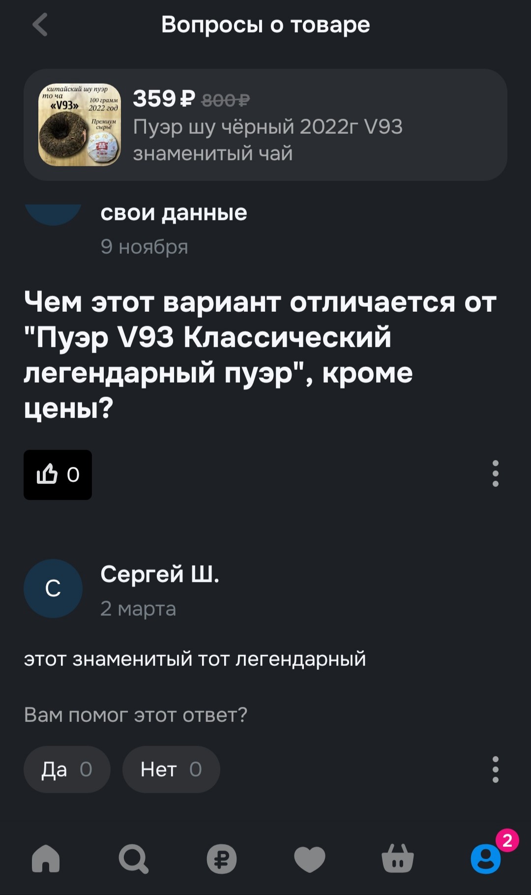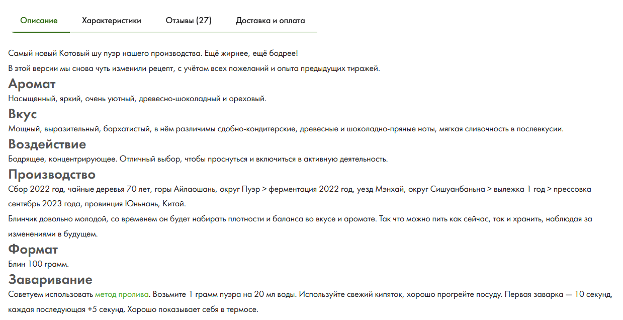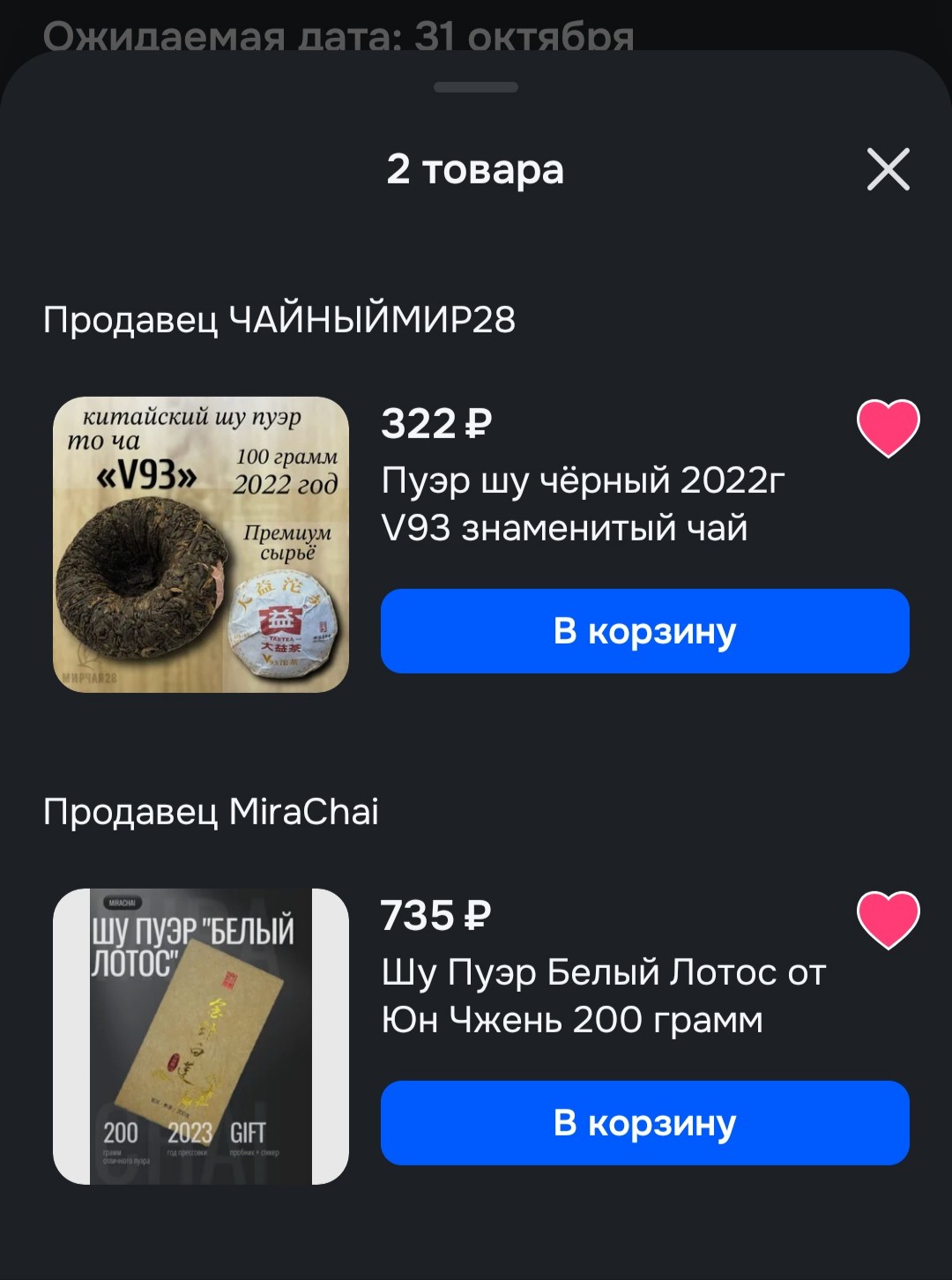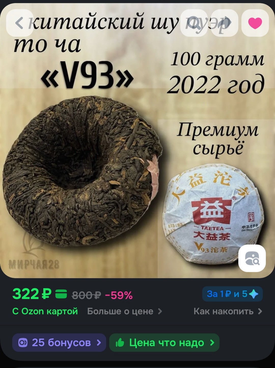 Все остальное на маркетплейсах - гораздо более рандомное, нежели блины-кирпичи пуэров. Если хочется попробоват чего-то реально вкусного, я бы советовал затариться у профильных площадок типа daochai или даже мойчае. Или на кого глаз упадет. С доставкой. Мне в прошлом году на работе задарили мини-коллекцию из 10 сортов мойчая, скажу так, это было оче вкусно и 70% из этого я бы не купил на маркетплейсах, или заебался искать и пробовать. >>750027 Раньше у них таких мемасных не было, сейчас ассортимент расширился, конечно.