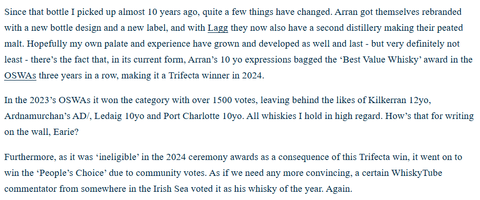 >>749980 Да он там разьебал все в недорогом сегменте, тут так понимаю речь про Ральфи, он его тоже весьма высоко оценил, но я его пил гдето в 20-21 году еще, потом все улетело в цене к хуям, но это может и к лучшему, я бы хуй завязал если бы этот Арранчик стоил 3.5к по акции как я его пил тогда