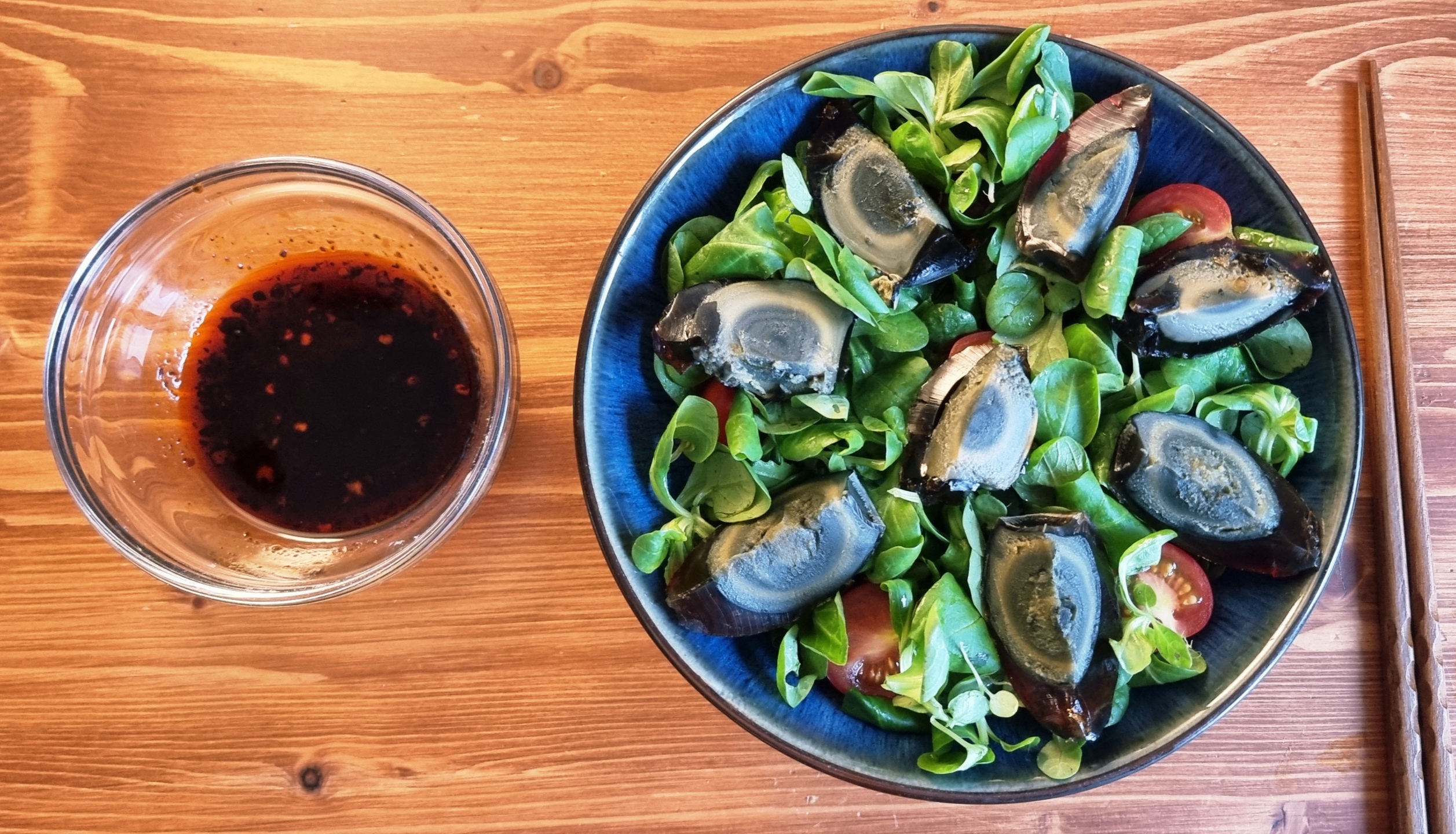 · Нарезанными дольками с маринованным имбирем. · В виде салата с тофу ("Пидан доуфу"), заправленного соевым соусом, кунжутным маслом и иногда перцем чили. В таком виде их вкус смягчается и становится более сбалансированным. · В качестве topping для рисовой каши (чжоу).