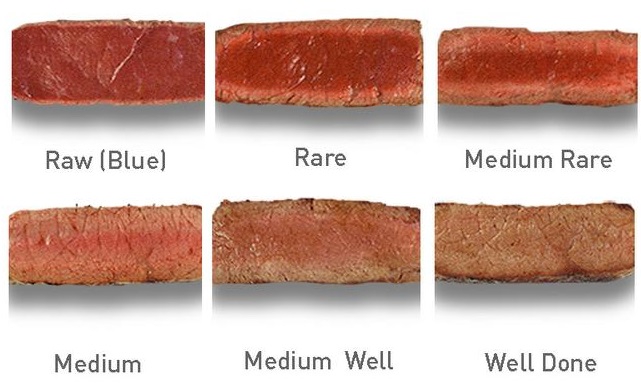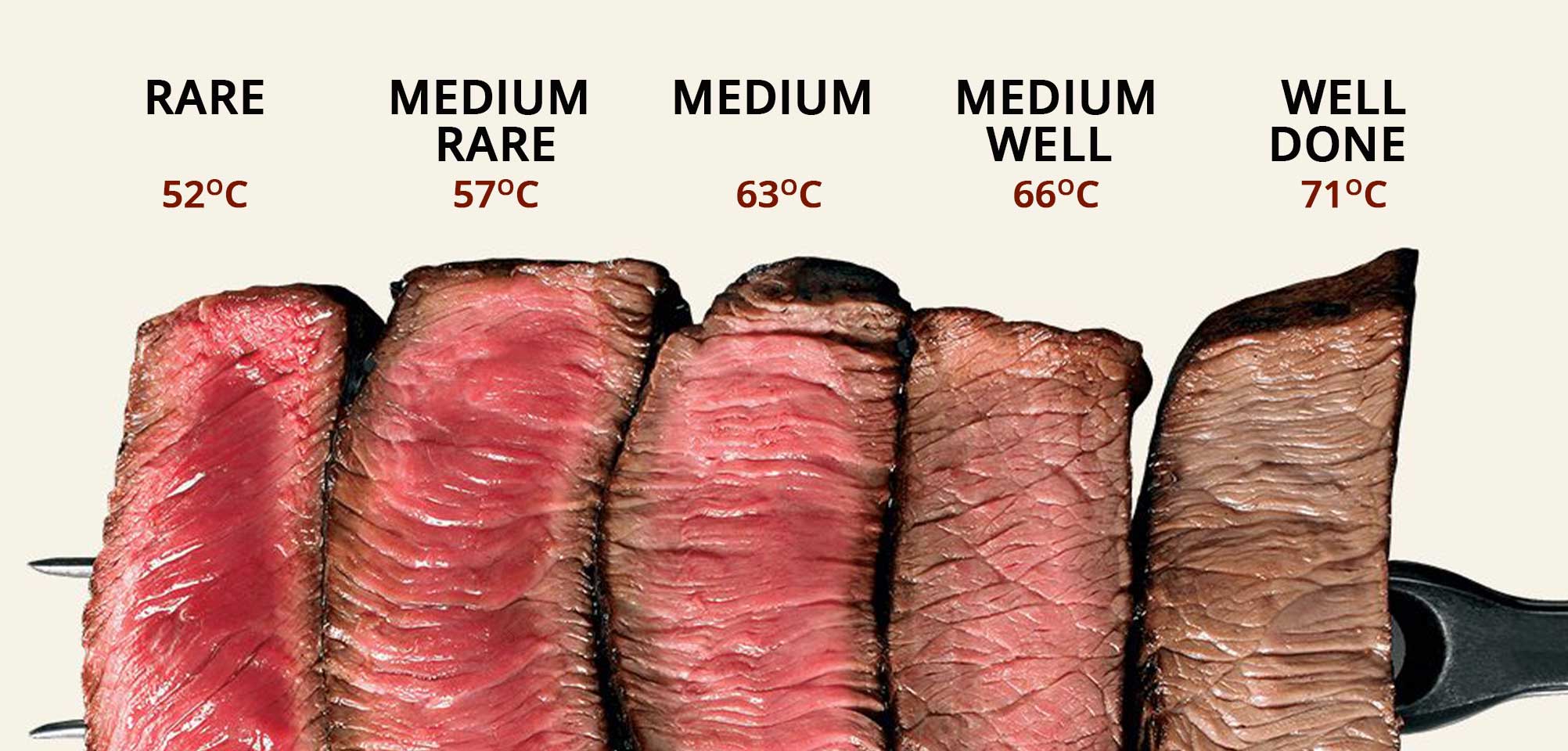 >>748480 Ориентируйся по температуре мяса после снятия с огня. Как правило там 3-5 градусов плюсом. Примерные температуры Raw – не более 40 Rare – от 42 до 46 Medium rare – от 46 до 50 Medium – от 52 до 57 Medium Well – от 60 до 65 Well Done – от 65 до 70 У меня принцип такой, жарю от mr до mw в зависимости от мраморности мяса, чем она выше тем выше прожарка.