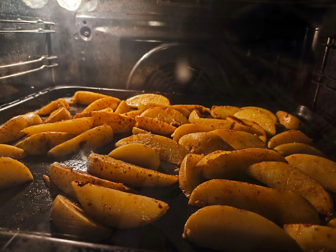Купи молодую картоху с нежной и гладкой шкуркой. Желательно сразу мытую, чтобы точно не наебаться Нарежь сначала пополам, а потом половинки на слайсы. Свари до полуготовности и въеби на полотенце, чтобы она подсохла и слегка остыла. Включи духовку на 200, чутка оставшую картоху на противень, налей 1-2 столовых масла, насыпь прямо в масло приправой для картофеля и перемешай всё. Запеки. Минут 25 будет достаточно. Режим верх-низ или с обдувом. Бомбезная картоха айдахо готова, приятного брат!
