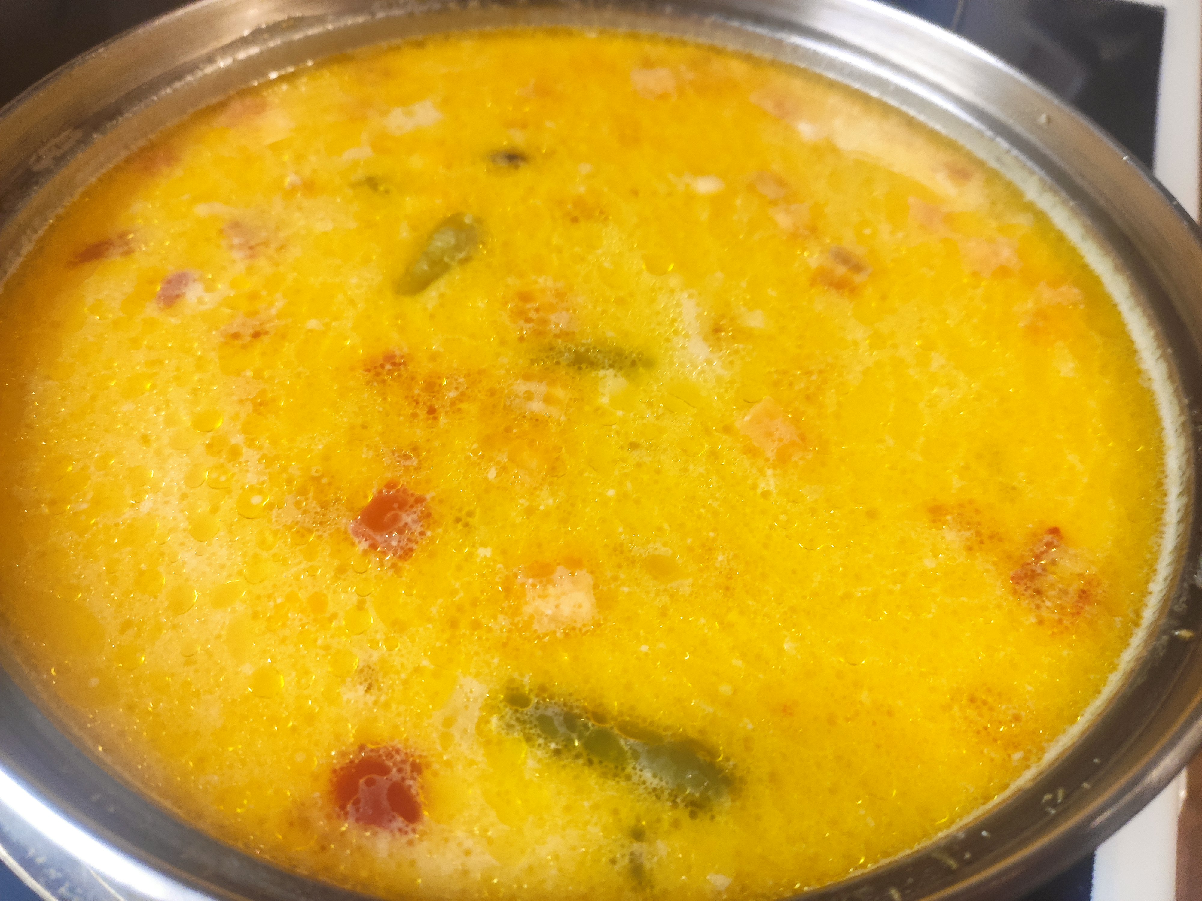 Куриный быдло-супчик, на обед. Отличичие от классики: добавлена помидорка, добавлен самянг икс2 спайси. Вышло около 3.5л супа в итоге, красный доширак отстает по остроте но не в разы, с хлебушком похлебать такое в кайф. Лапшу закинул сразу как сварились овощи и отставил на 5 минут остывать, потом по контейнерам и в холодос. Обязательно буду повторять.