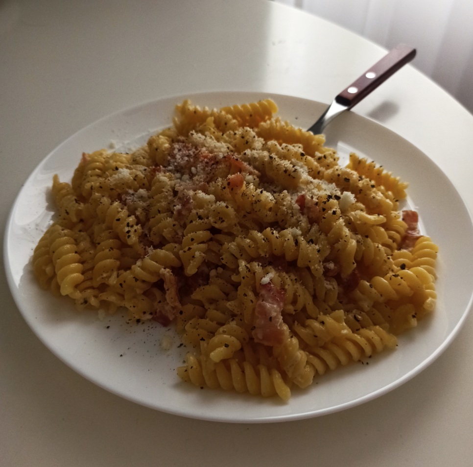 >>750726 >Паста карбонара на обед. У меня когда бабки были и я в деловых костюмах потчивал с девушками в едальнях, у нас была одна точка в городе, где готовили божественную карбонару. Она была гораздо более нежной с большим количеством соуса, соус там вообще чуть-ли не главное в блюде, сухих частей в блюде не было, ну и со всякими морепродуктами. По консистенции больше похожа на фото. Не знаю как так вышло, ощущение, что повар готовил её всю жизнь, но всё остальное хуйня - с тех пор я так и не ел более вкусной. Кстати, кто-нибудь выковыривает изюм из кексов?