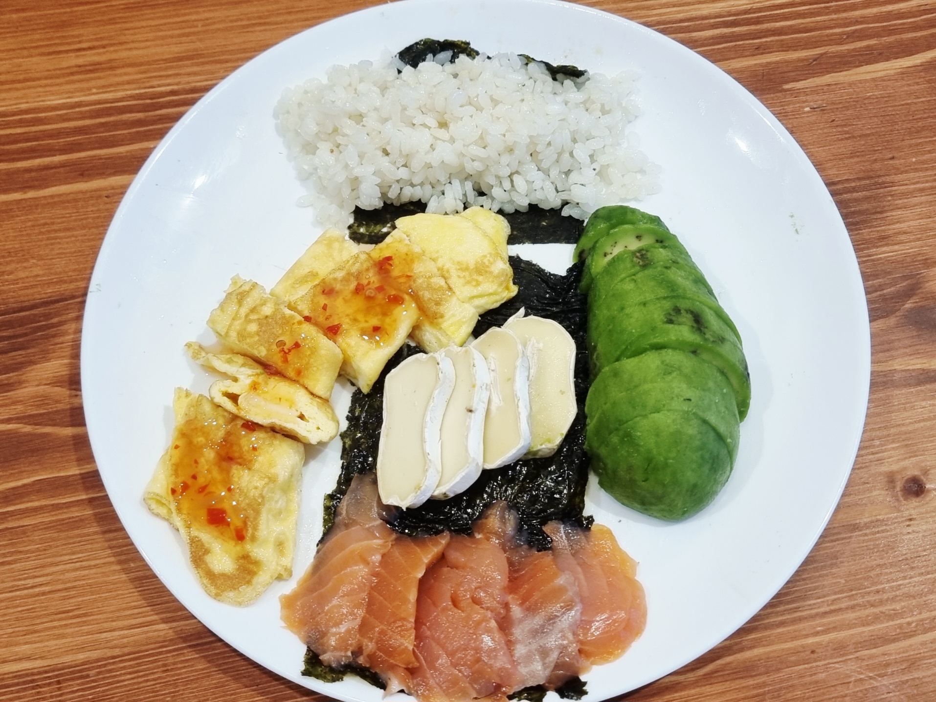 А придумай на завтрак салат с зеленью (руккола, шпинат, листья свеклы), огурцы, помидоры, яйца, ореховый соус, красная солёная рыба, авокадо。