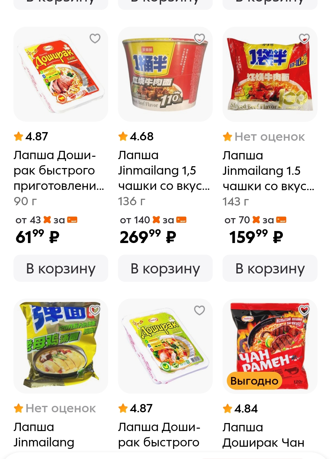 >>753092 >Я вот потерялся и покупаю лапшу только по ооочень большим скидосам Биг бон вроде самое приличное из дешевых Ещё я на рисовую подсел, но она опять везде пропала