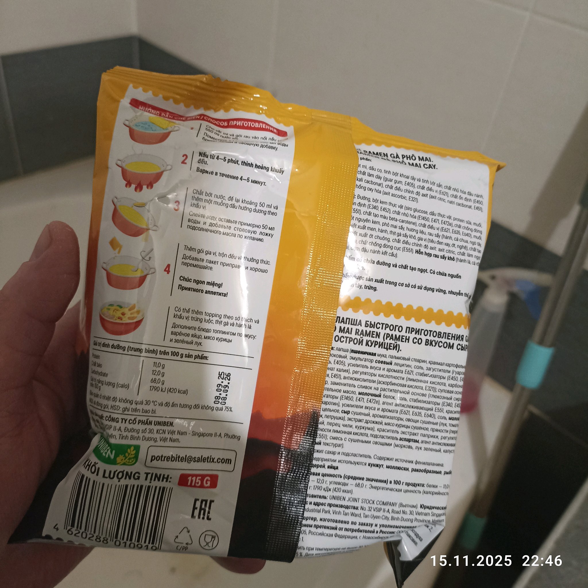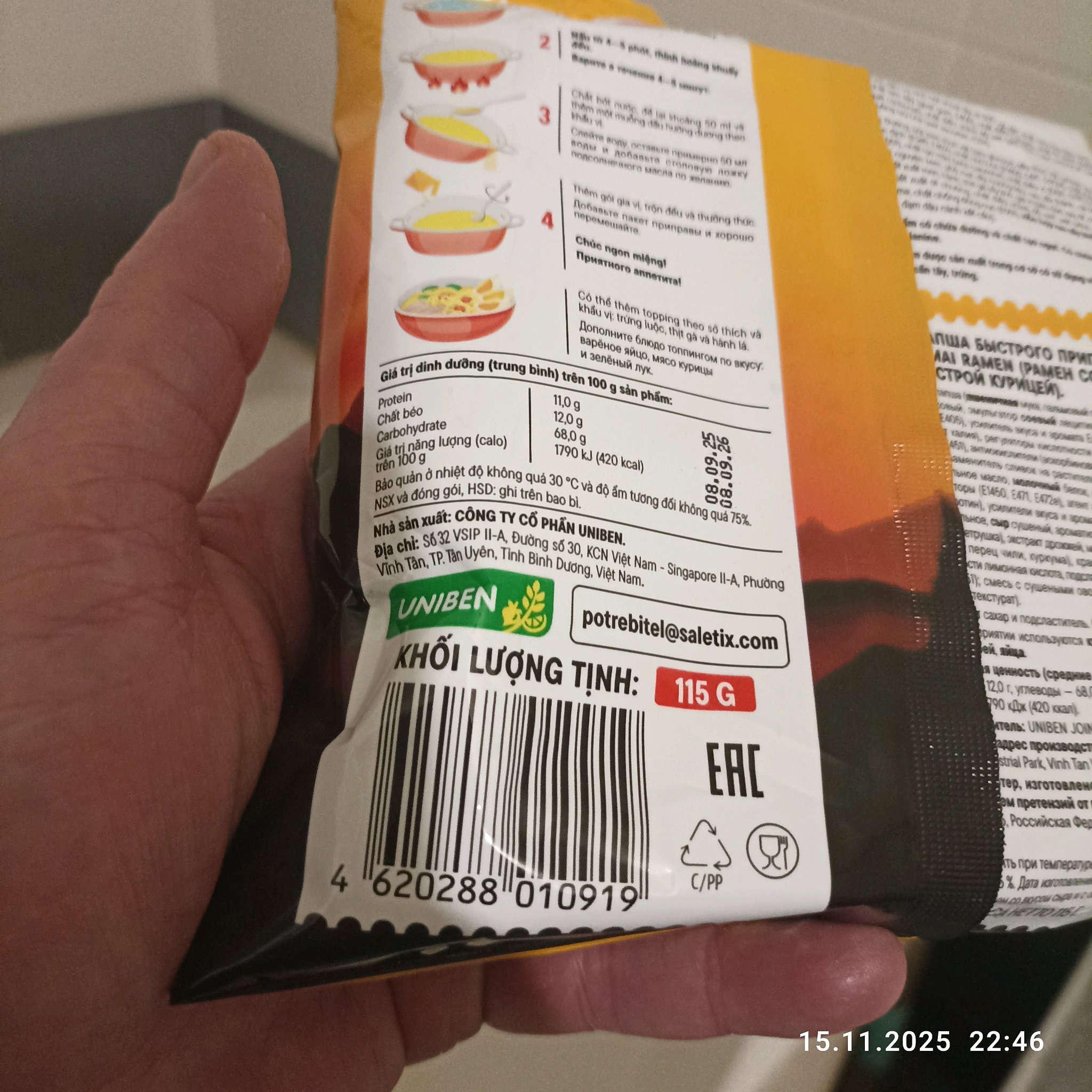 Пикрил из Фиксы, 65г. Только ценник забыл, но вроде скромный. Несколько вкусов, взял "чёрного чеснока", инфа на внутренней упаковке кст на русском. В принципе, как дешманский биг-ланч с мясным соусом, но явным привкусом чеснока, похоже тупо сыпанули сушёного судя по остаткам в посудине, и никакой он не чёрный. Неожиданно зашёл компактный формат, сейчас порции большие, по крайней мере у новых встречающихся видов лапши, а эта так-же качественно забивает голод горяченьким, ну и с собой носить само-собой удобнее.