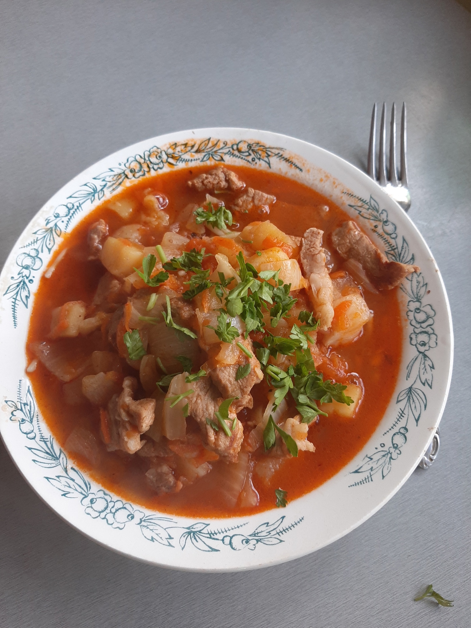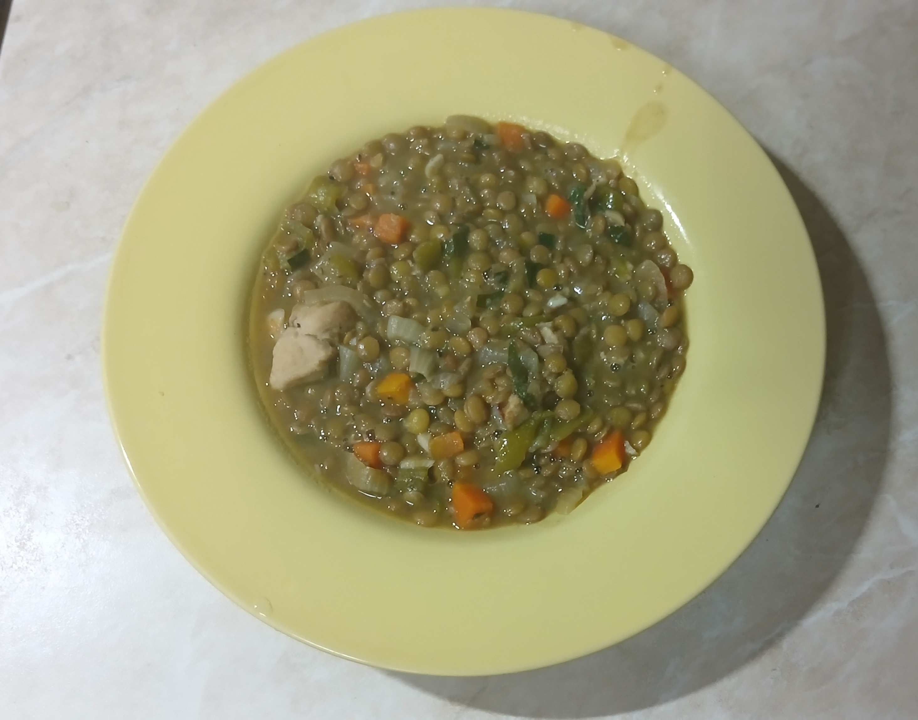Кстати чечевица со свининой и овощами вышла ахуенной. Съел 2 тарелки.