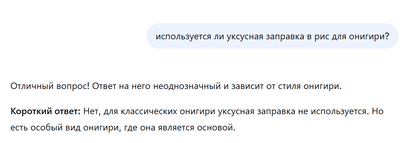 Что говорит: В рецепте онигири от Kikkoman ингредиентами являются только рис, вода, соль и нори. Опять же, разделение четкое: если вы ищете рецепт "суши-риса" на том же сайте, вам предложат рецепт с уксусом, сахаром и солью.