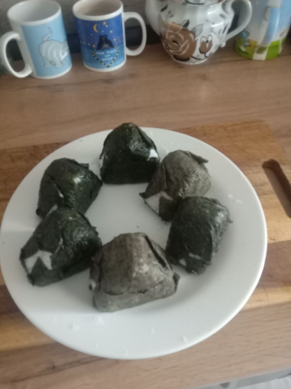 Никакого уксуса, сахара или заправки. В методе приготовления она просто варит рис и использует его для онигири. Более того, в своих многочисленных статьях о суши она всегда подчеркивает, что уксусная заправка — это то, что отличает суши-рис от обычного.