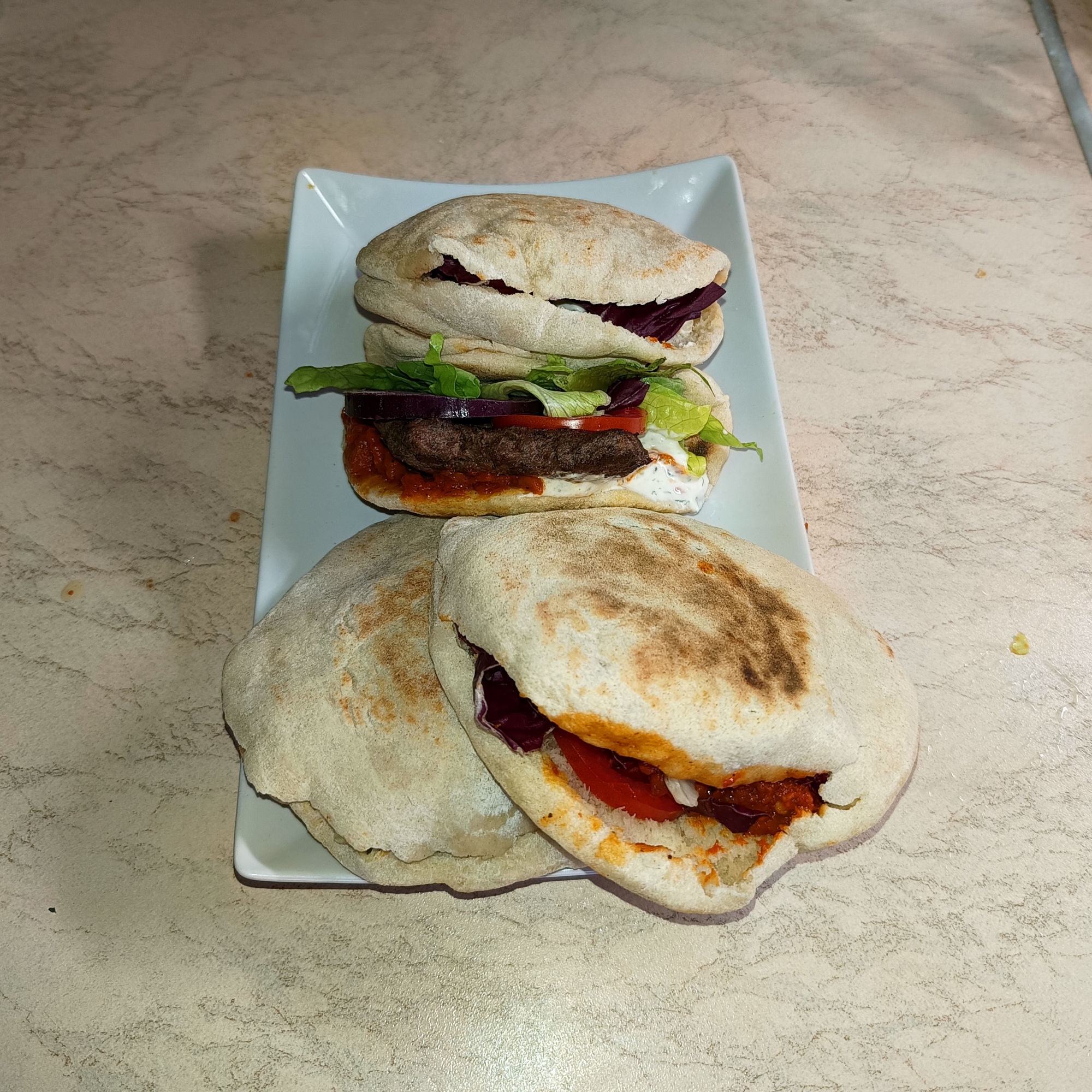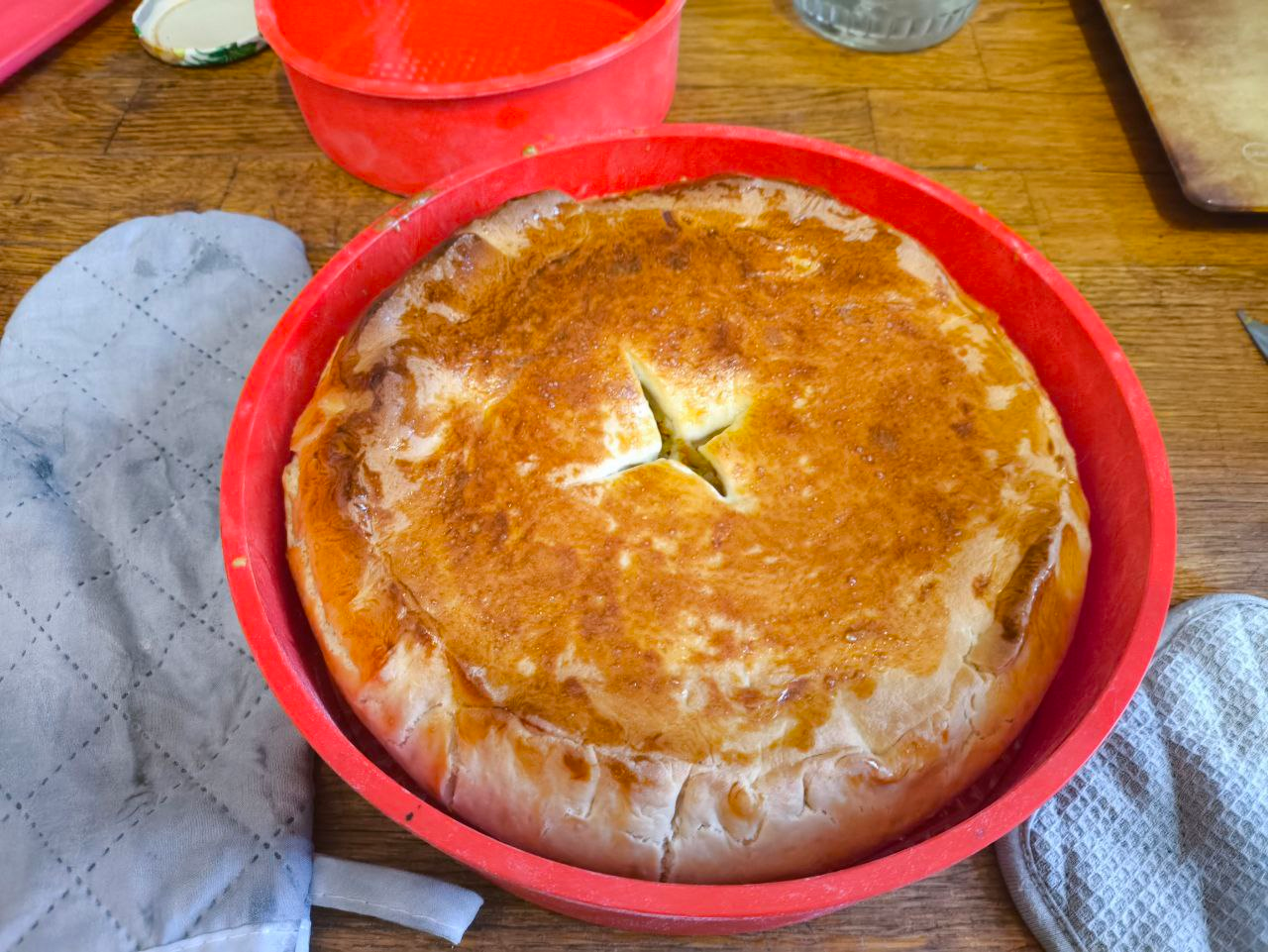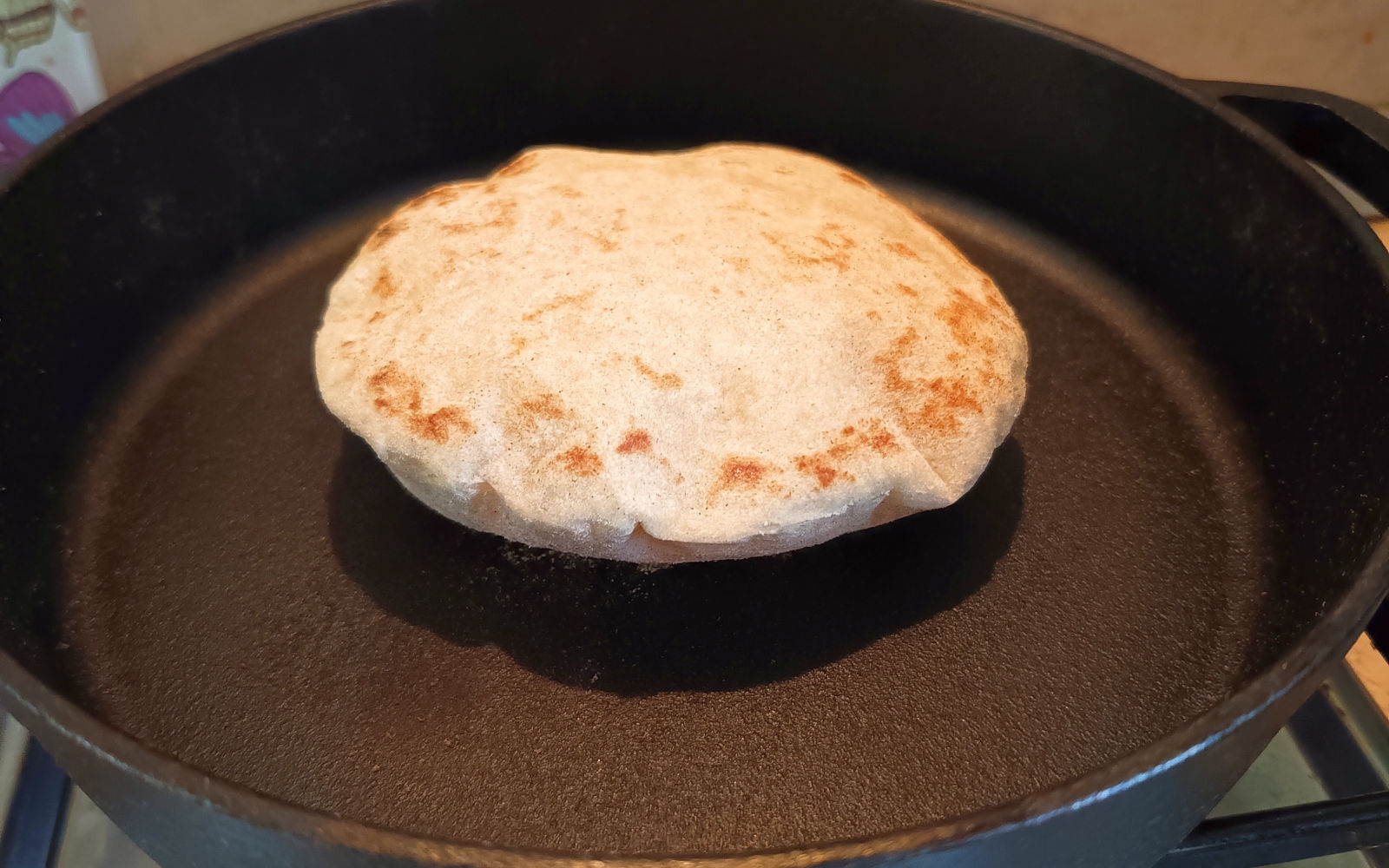 Трапеза югославского крестьянина. Последняя пита не надулася, ну что ж, случается. Можно, конечно, вообще не париться здесь с надуванием, а просто одну сверху, одну снизу.