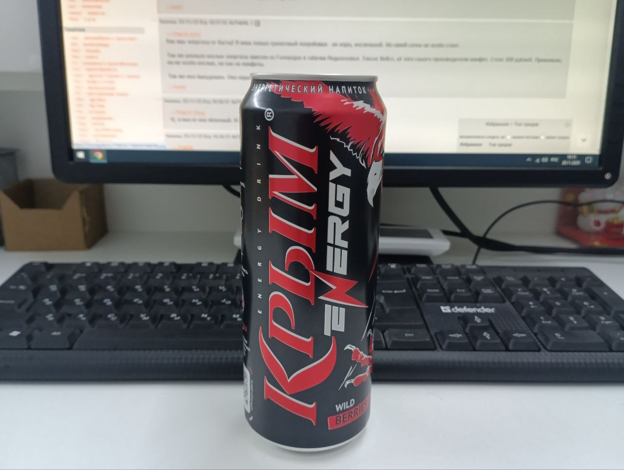 Сегодня захотелось чего-нибудь новенького, и вспомнил я, что наш пивобезалкогольный комбинат "Крым", работающий еще со времен СССР, уже несколько лет как влился в эти молодежные тренды и стал производить энергетики под маркой "Крым Energy". Пиво у этого завода всегда было богомерзки отвратительное (еще и дорогое), а вот всякие лимонады, колы и прочие тархуны норм, так что покупал одновременно с опаской и надеждой не выкинуть деньги на ветер. Выбрал "цитрусовый шторм" за 85 рублей. Это оказалось не мерзко, хотя химозный привкус ближе к концу банки и нагреву напитка проявляет себя. Напоминает стандартный Адрик, только не такой кислый, плюс отдает ананасом (не знал, что он к цитрусам относится), и таки да, в составе ананасовый ароматизатор. Ну, хотя бы без сахзамов, уже спасибо. В следующий раз, если потянет на местную продукцию, поищу их арбузный или ягодный энергос.