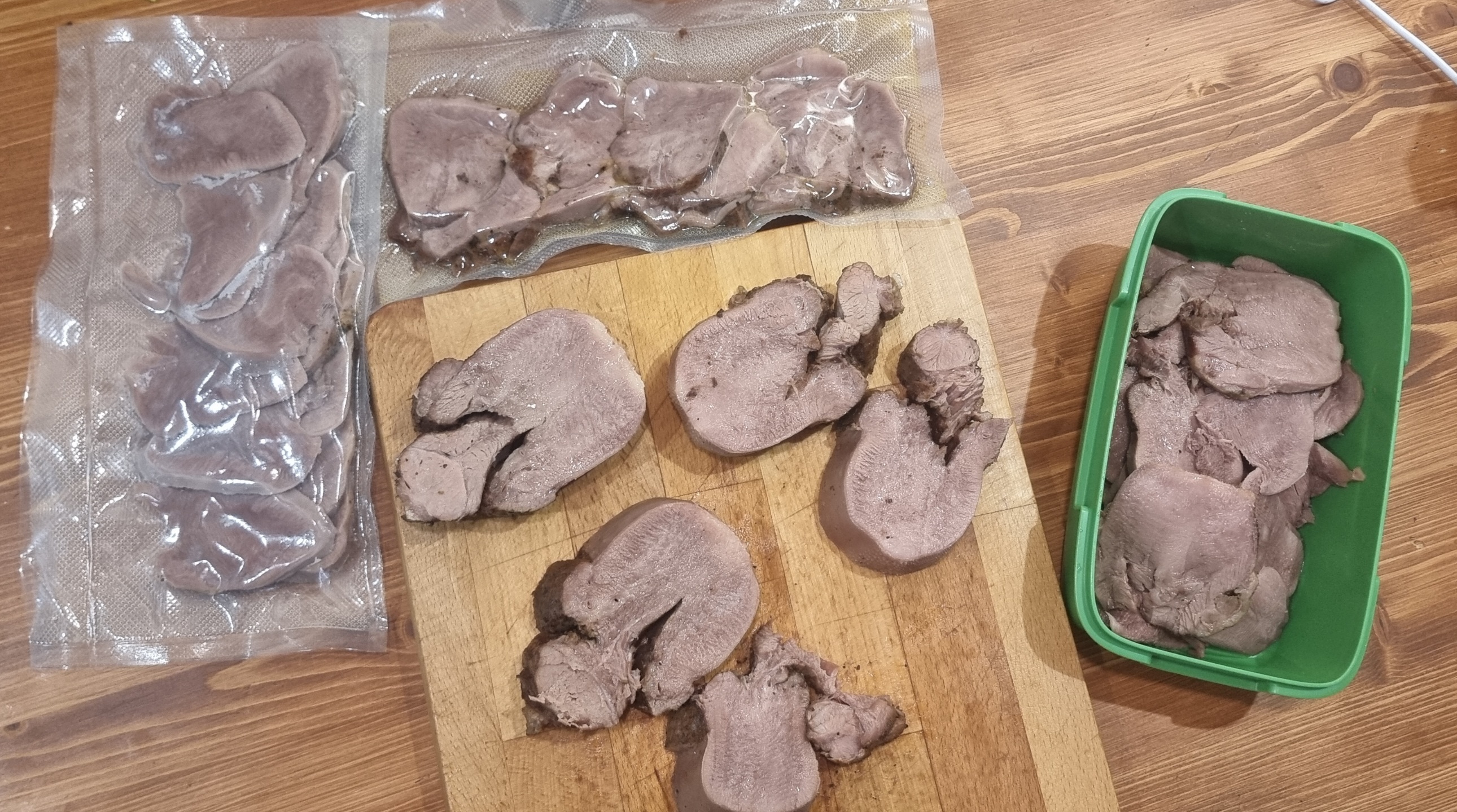 Язык говяжий во вкусвиле 461 р за 100 г. https://vkusvill.ru/goods/yazyk-govyazhiy-traditsionnyy-narezka-21384.html Свежий язык на рынке 1200 р за кг. После сувид выходит намного вкуснее, чем во вкусвиле, да ещё и стейки можно сделать. Завтра посчитаю эконом, какой вес будет на выходе. Пикрил 2 с небольшим килограмма на 2665 р. 74 С на 24 часа.