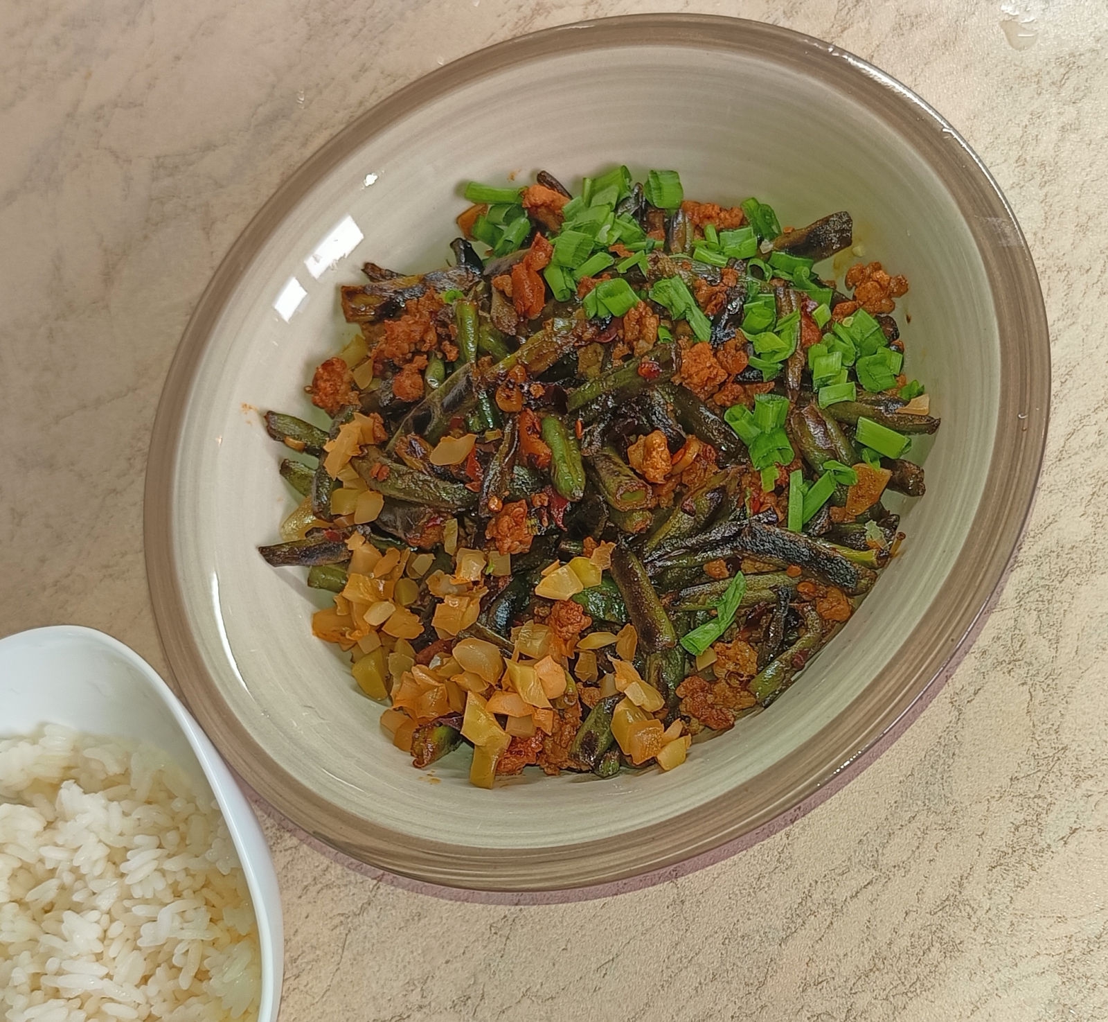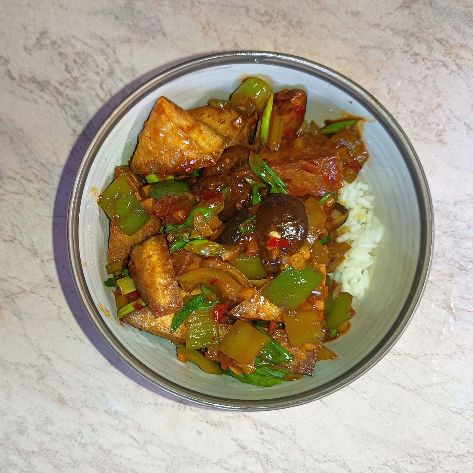 Сычуаньского хрючева псто. - Мапо тофу с лапшой - Маишаншу ака "муравьи лезут на дерево". Называется так, потому что кусочки фарша на стеклянной лапше похожи на насикомых на ветках. - Ганьбянь Сицзидоу (надеюсь, не обосрался с Палладием), стручковая фасоль по-сычуански. - Лацзыцзи ака жареная курица с перцем по-чунцински. Ну или индюха, как у меня. Охуенчик, надо будет потом из более мягкой и сочной курочки сделать. И побольше, а то кончается быстро. А, и кунжут к ней не хочет липнуть, падла.