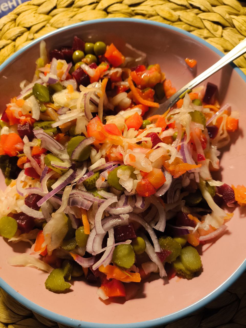 >>759024 >должен вроде Не должен, если свеклу отдельно порезать и обмаслить, тогда ари добавлению к остальному не будет всё обмазано фиолетовым, вечно ваш кэп 1ого ранга. Ну и можно свеклу ещё просто посыпать. Но вот зачем там квашеная капуста и что-то жёлтое по типу перца - это загадка. А ещё уксуса вроде бы нет. >>759023 >не ценил, а сейчас с удовольствием А что раньше нравилось? Шашлыки, торты или что?