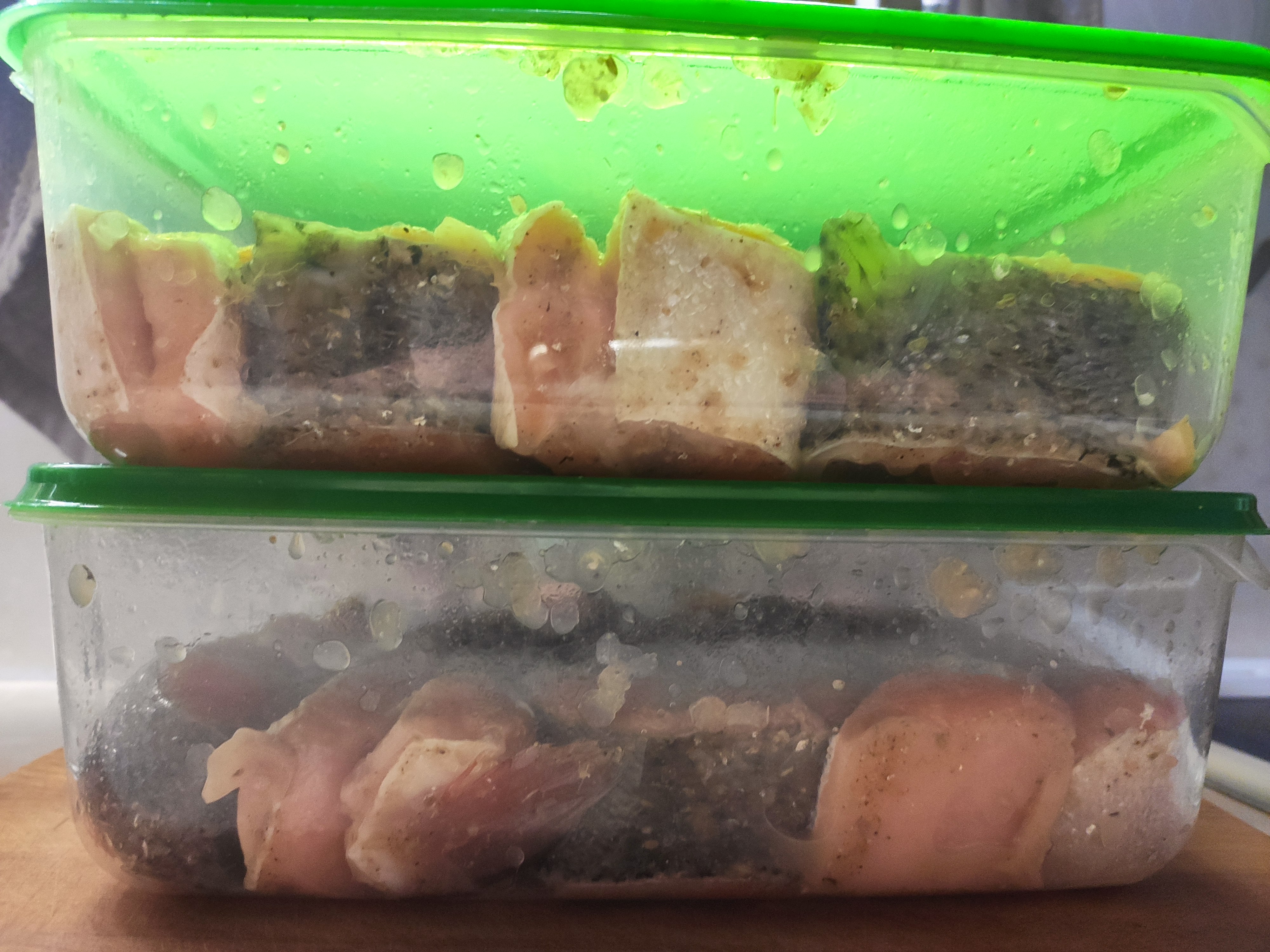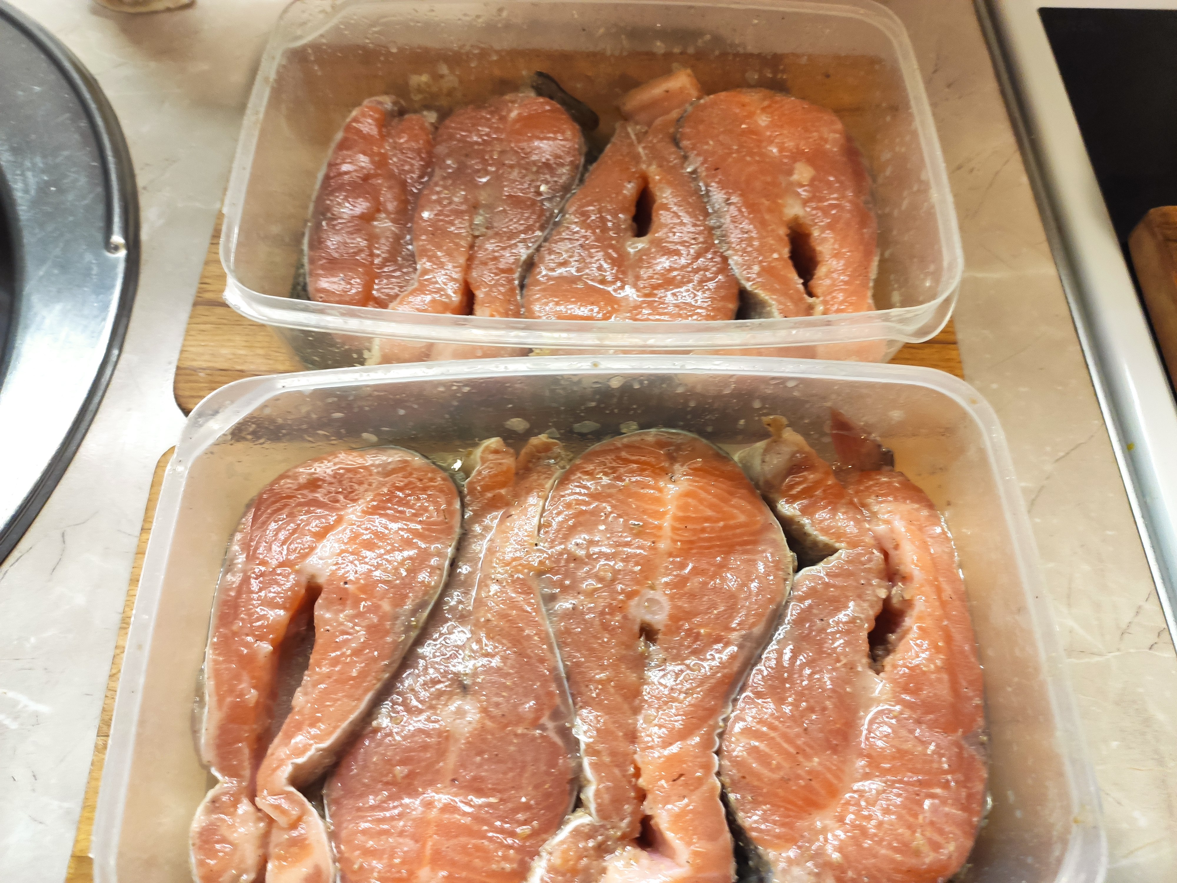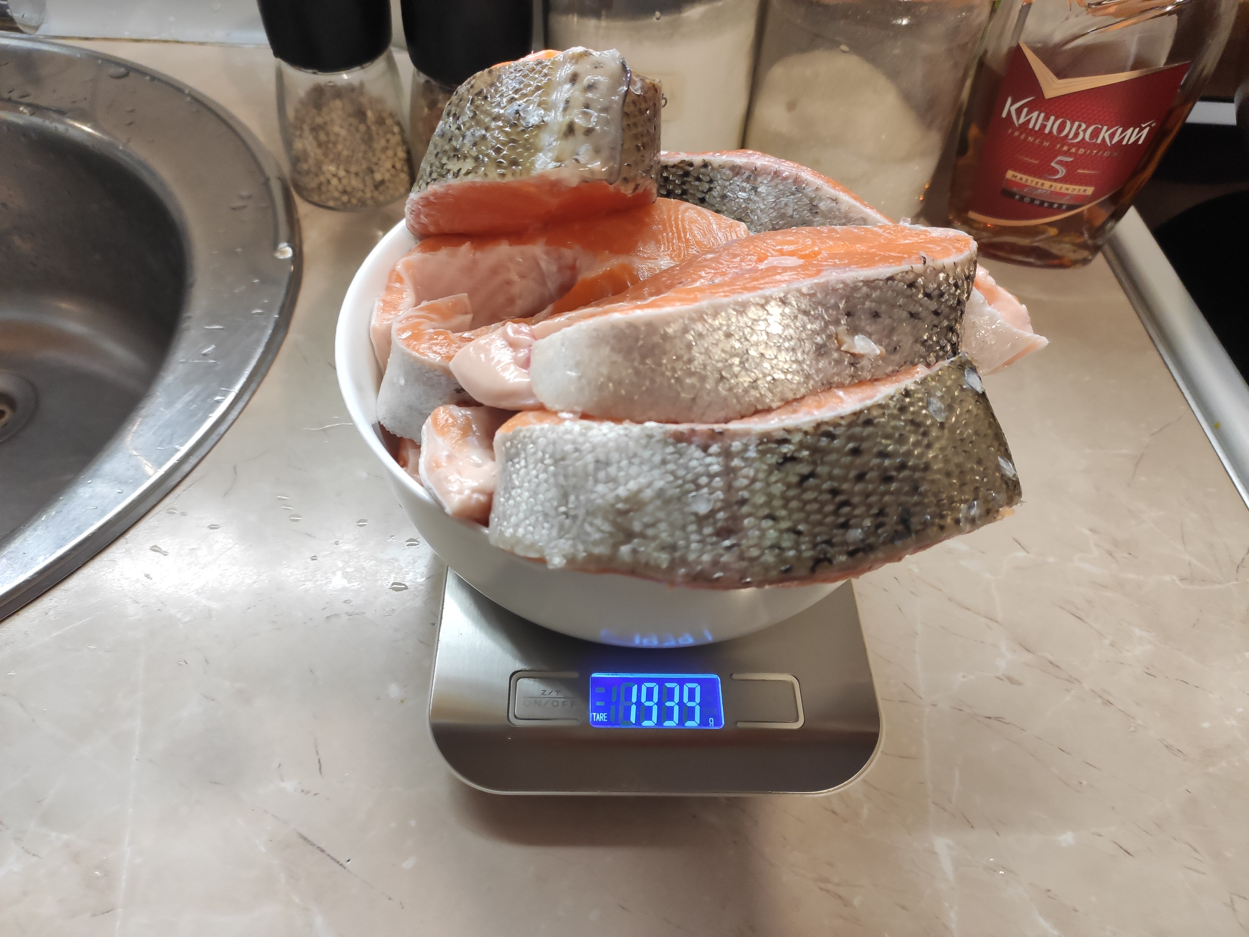 >>759916 >Куски толстоваты всё-же как мне кажется. Нужны раза в полтора тоньше - не просолится, не промаринуется. Либо понадрезать. Не первый раз делаю - нормально просаливается, в моём случае что-то между мало и средне-солом для моего вкуса. Мясо форели менее плотное чем свинина и говядина.