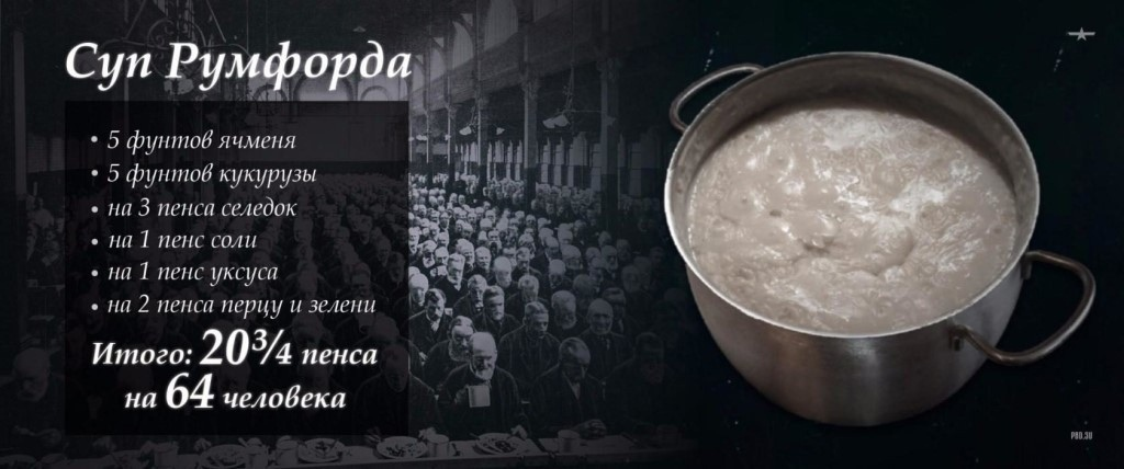 Во-первых, суп Румфорда для бедных и бездомных - бесплатный.