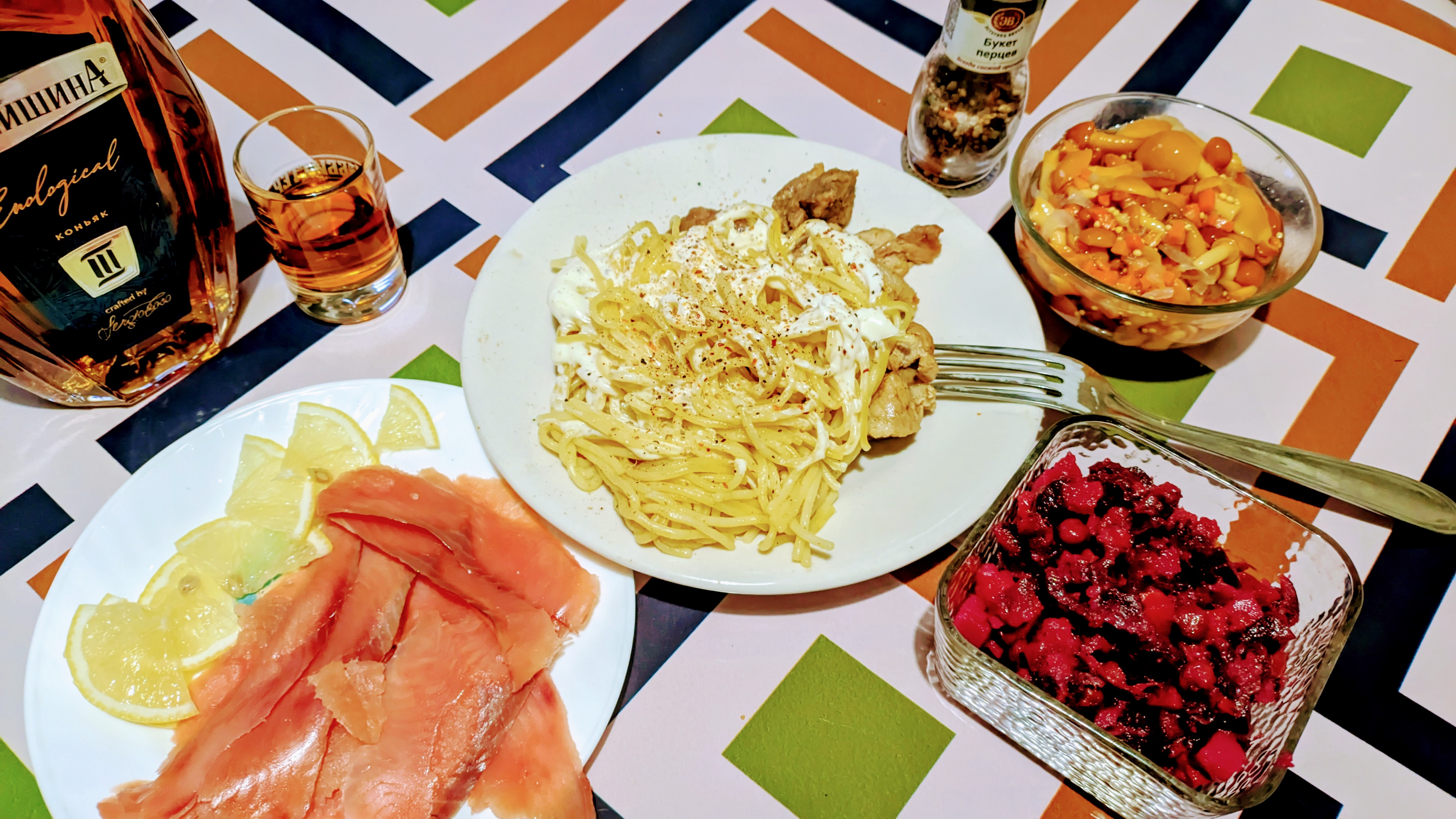 >>760453 Доедаю винегрет (в планах салат Росоли, это как селёдка под шубой, но где не слоями ингредиенты, а всё перемешано, мне так удобнее). Делал также макаронную запеканку по типу зити, но где вместо колбасы обжаренные заранее мелкие кусочки куриного филе, а вместо сыра КАРАУЛ! сметана... но мне норм, углеводисто-жирненько, нажористо