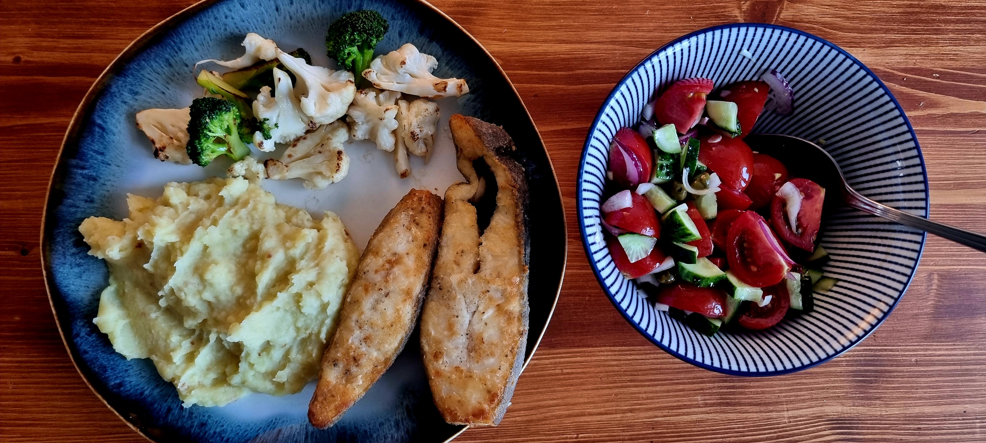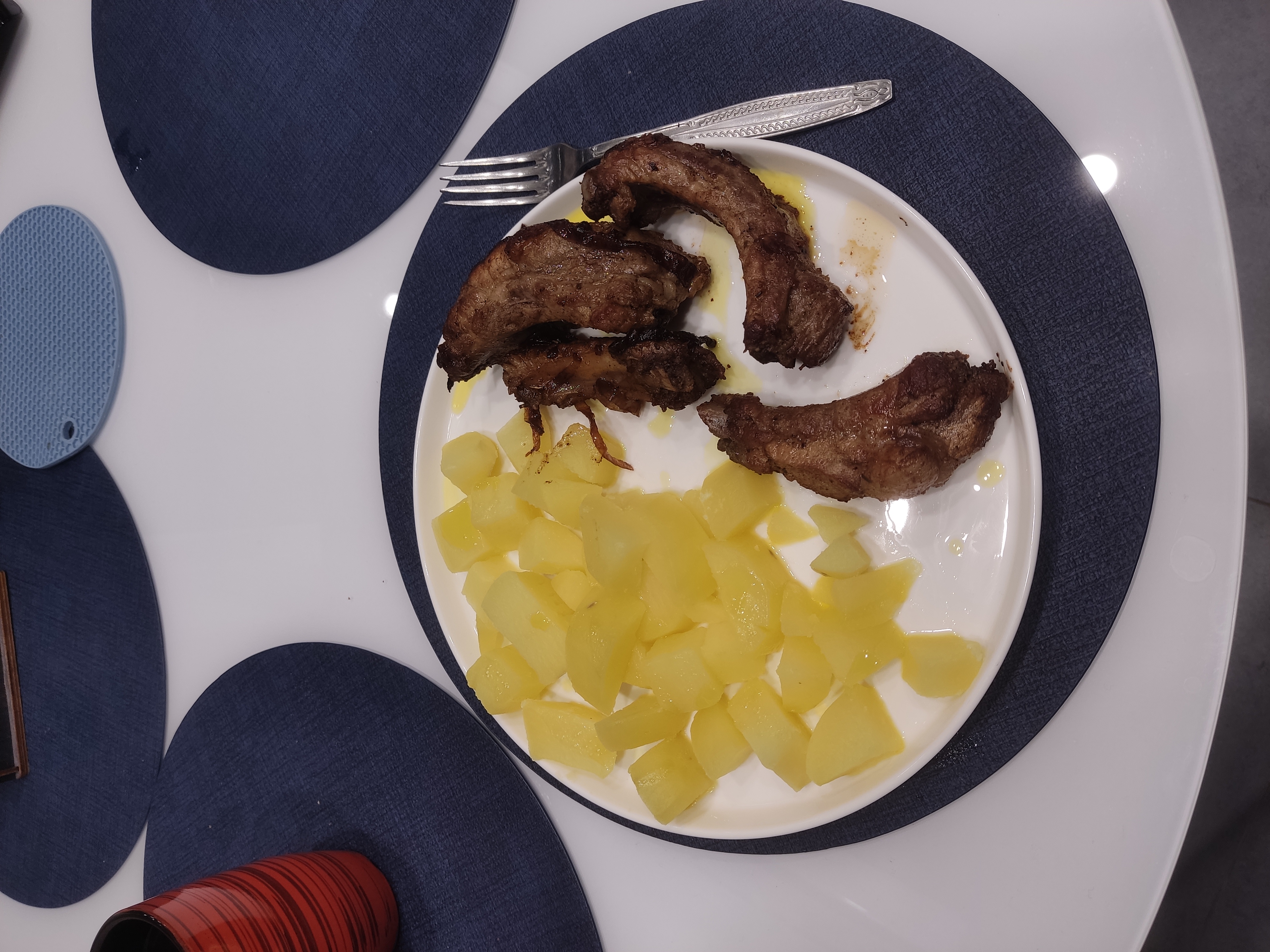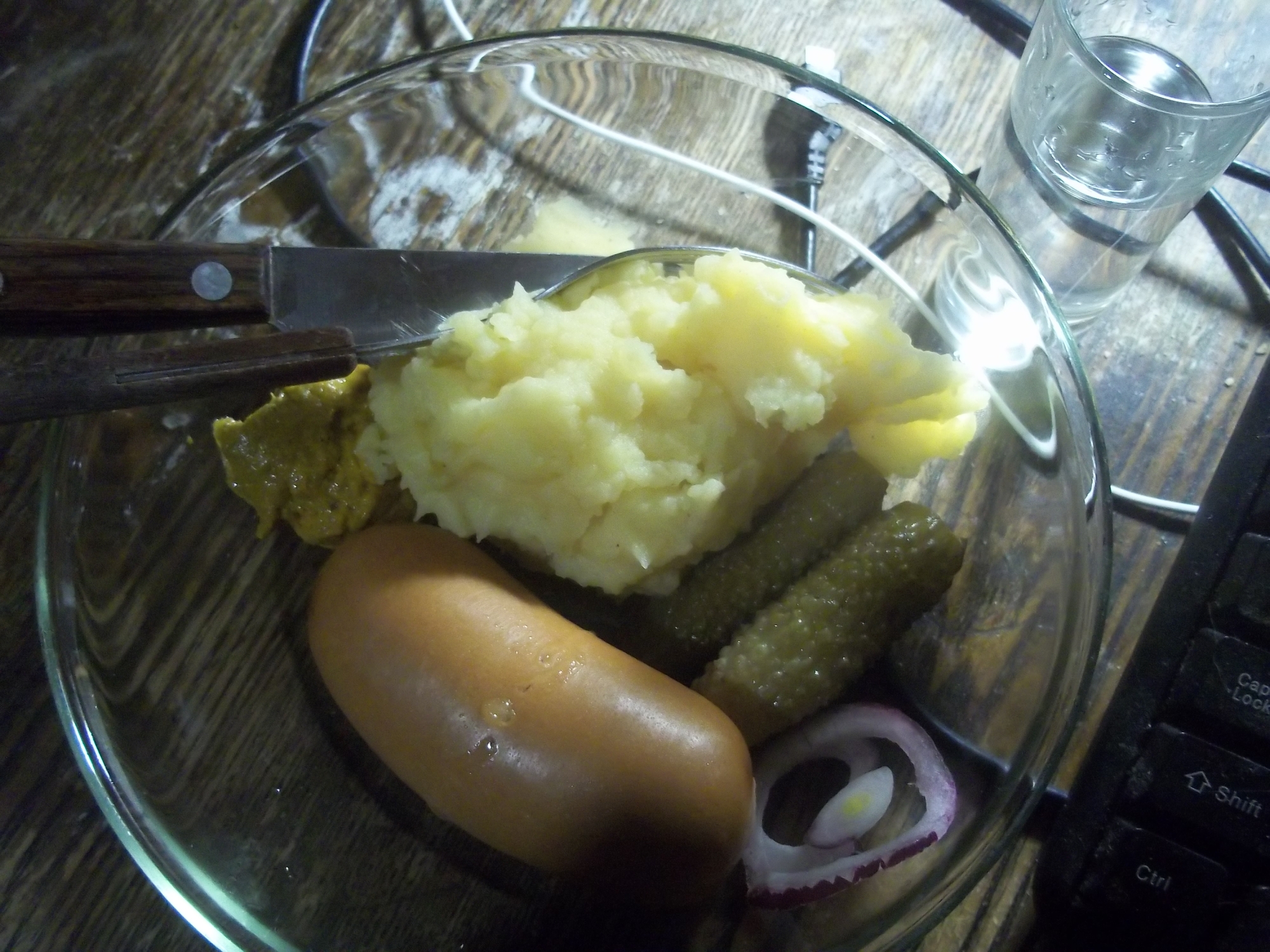 Вчерашние массмаркетовые каклетки на ужин. Картошка и огурцы тоже массмаркетовские.